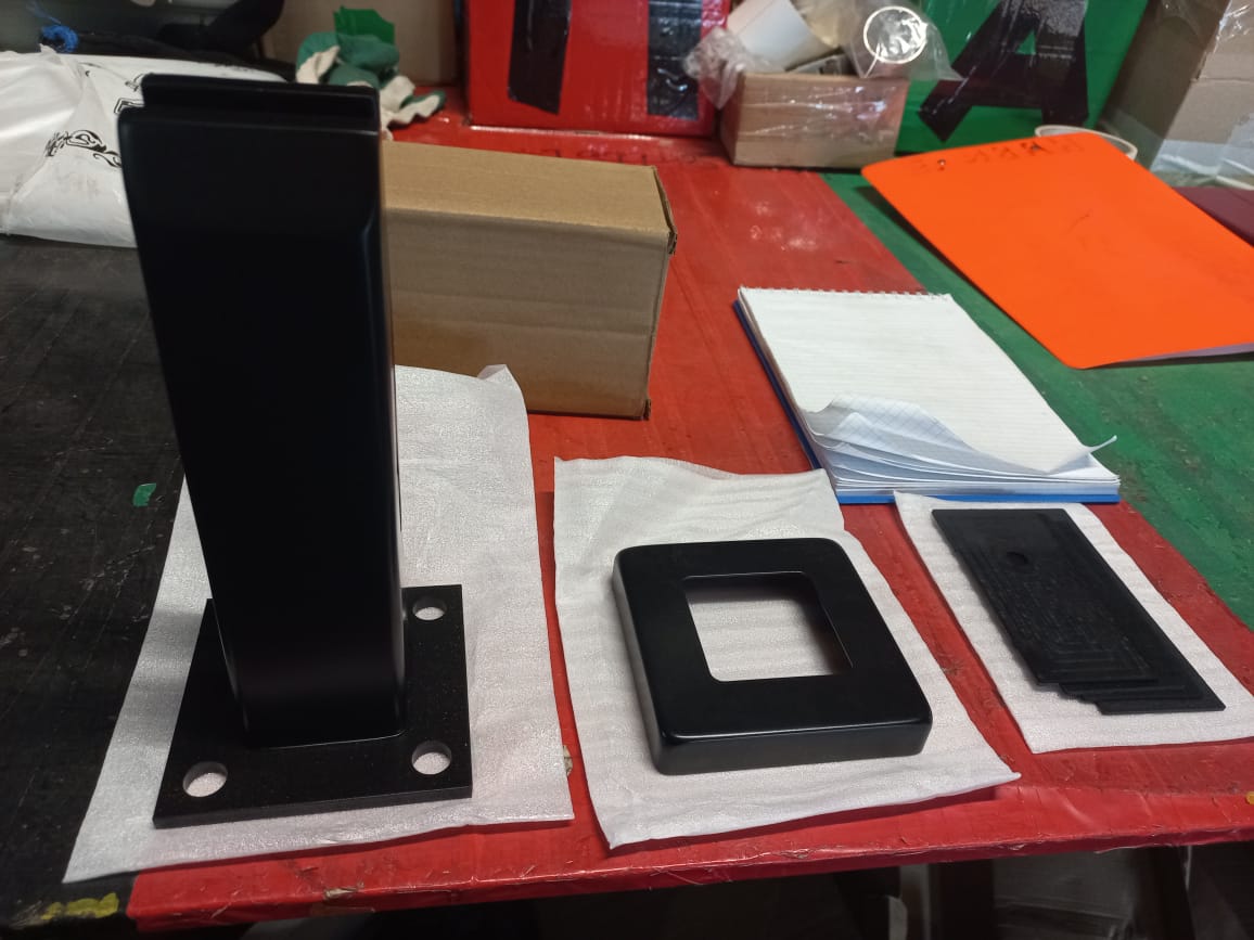 Стеклодержатель литой напольный, плоский 50х50х190 мм, для стекла 10-12 мм, черный RAL9005 мат, AISI 304 Фk275-2- BL