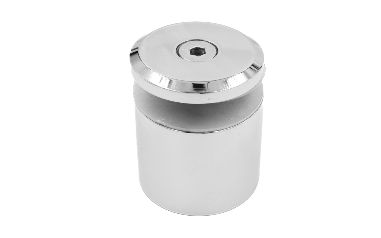 Стеклодержатель Ø50х10х18, шпилька М16х205 мм, для стекла 8-40 мм, AISI (201), с возможностью регулировки выноса до 65 мм, для торцевого крепления стекла, полированный, литой k277-3 купить в Москве