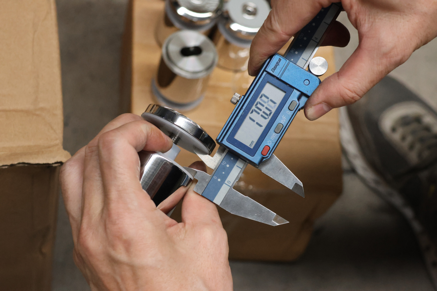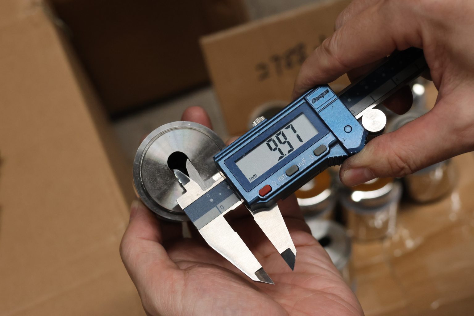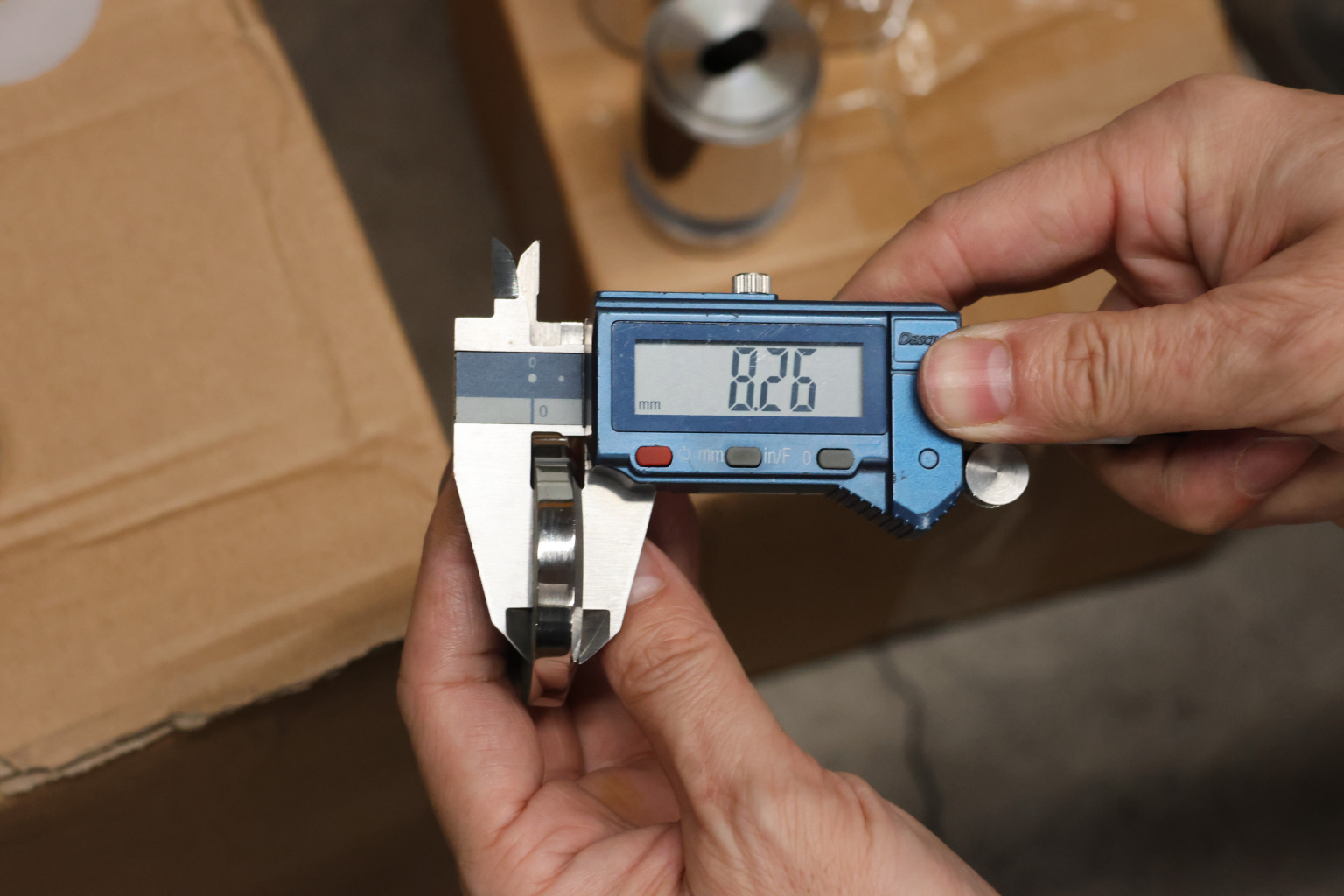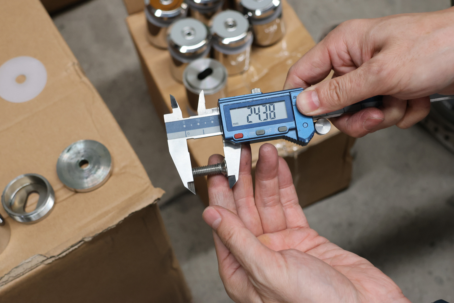 Диаметр отверстия в стекле минимально 16 мм. Полированная поверхность 600 Grit. Марка стали - AISI 304.