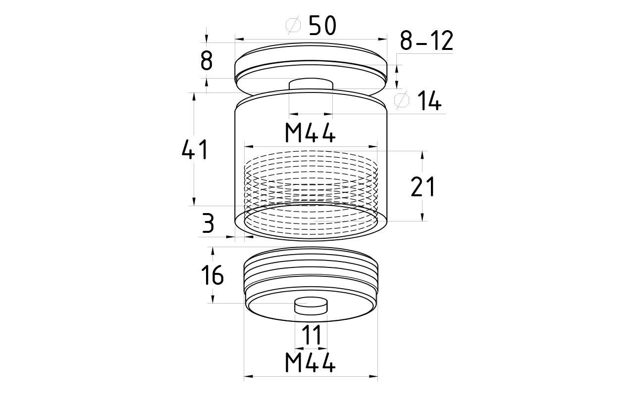 Точечный держатель стекла к стене Ø36x40, регулируемый, под стекло 8-12 мм k084-4