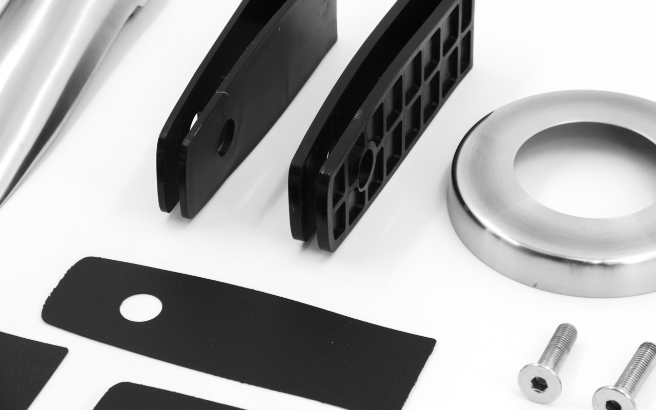 стеклодержатель, декоративная крышка, два комплекта проставок под стекло 12 и 16 мм