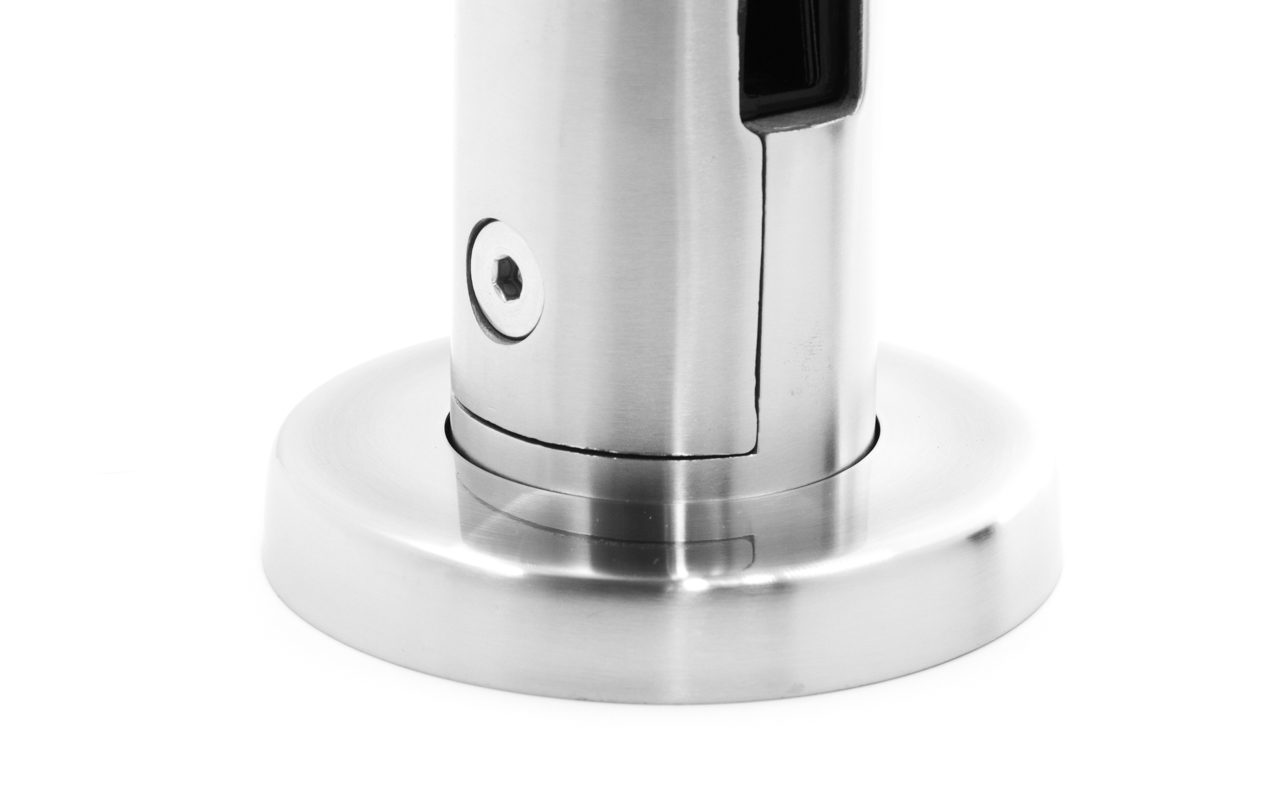Стеклодержатель литой напольный, круглый, для стекла 12 - 16 мм, шлифованный, марка стали- AISI 304. Так же вам понадобиться для крепежа потайной винт под шестигранник k601-19-120.