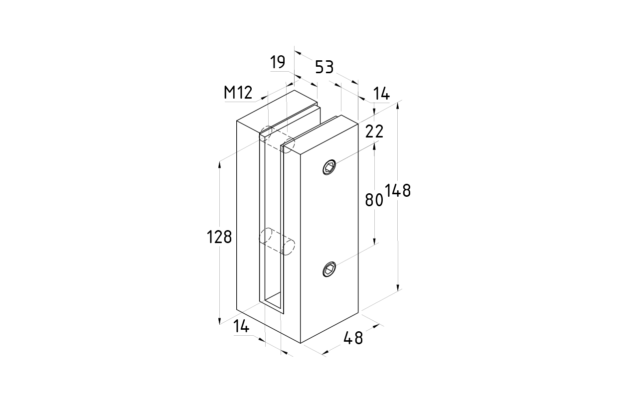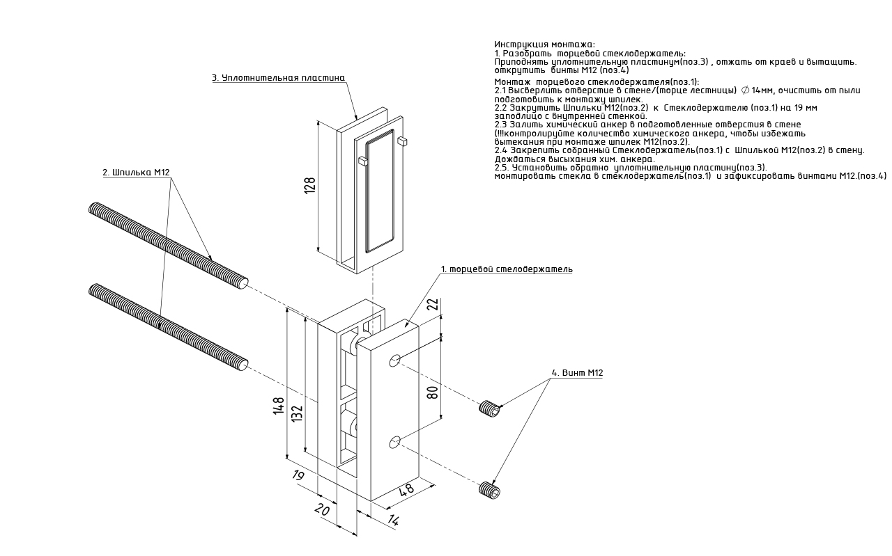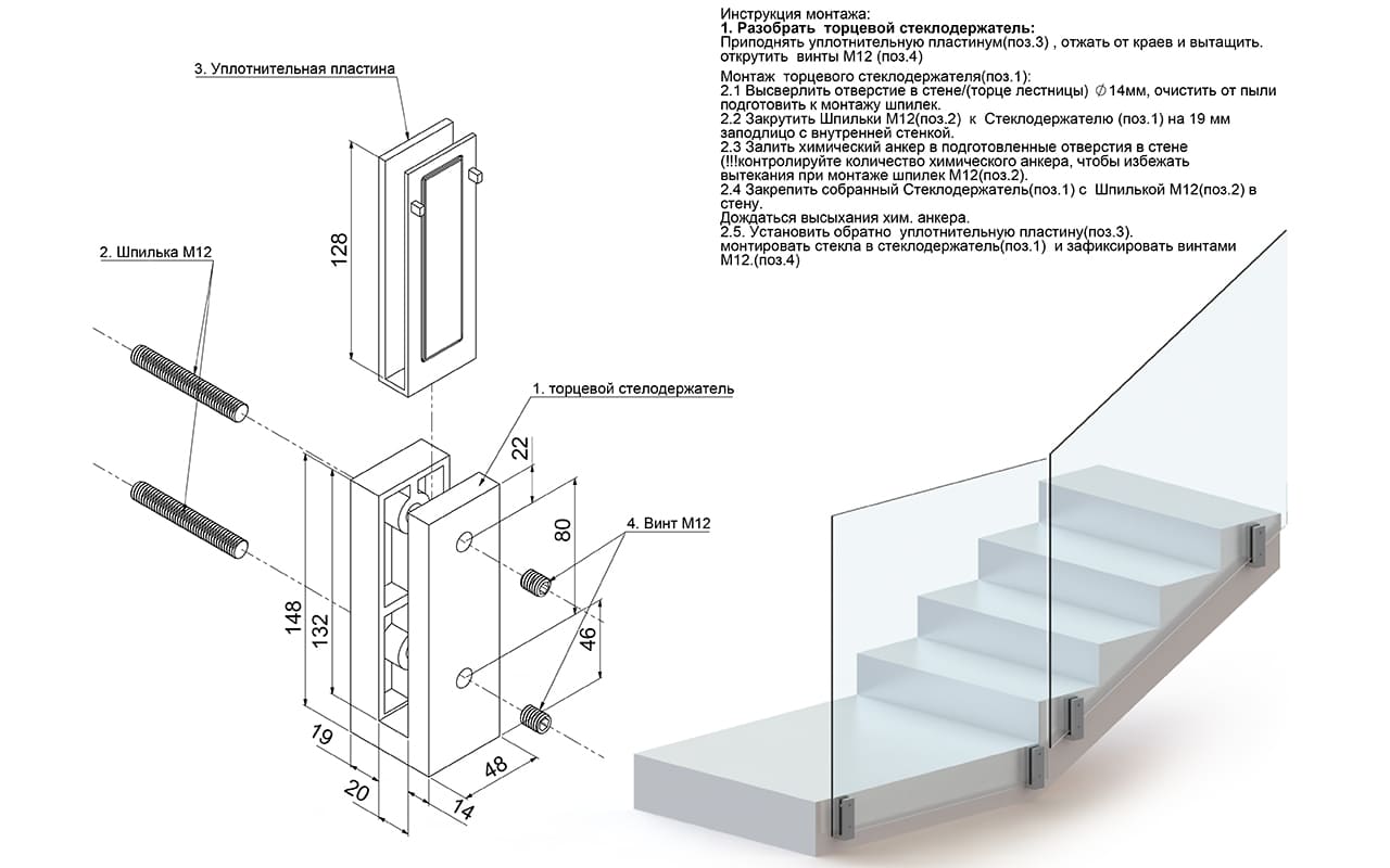 Торцевой стеклодержатель для стекла 12 мм, полированный AISI 304 k178