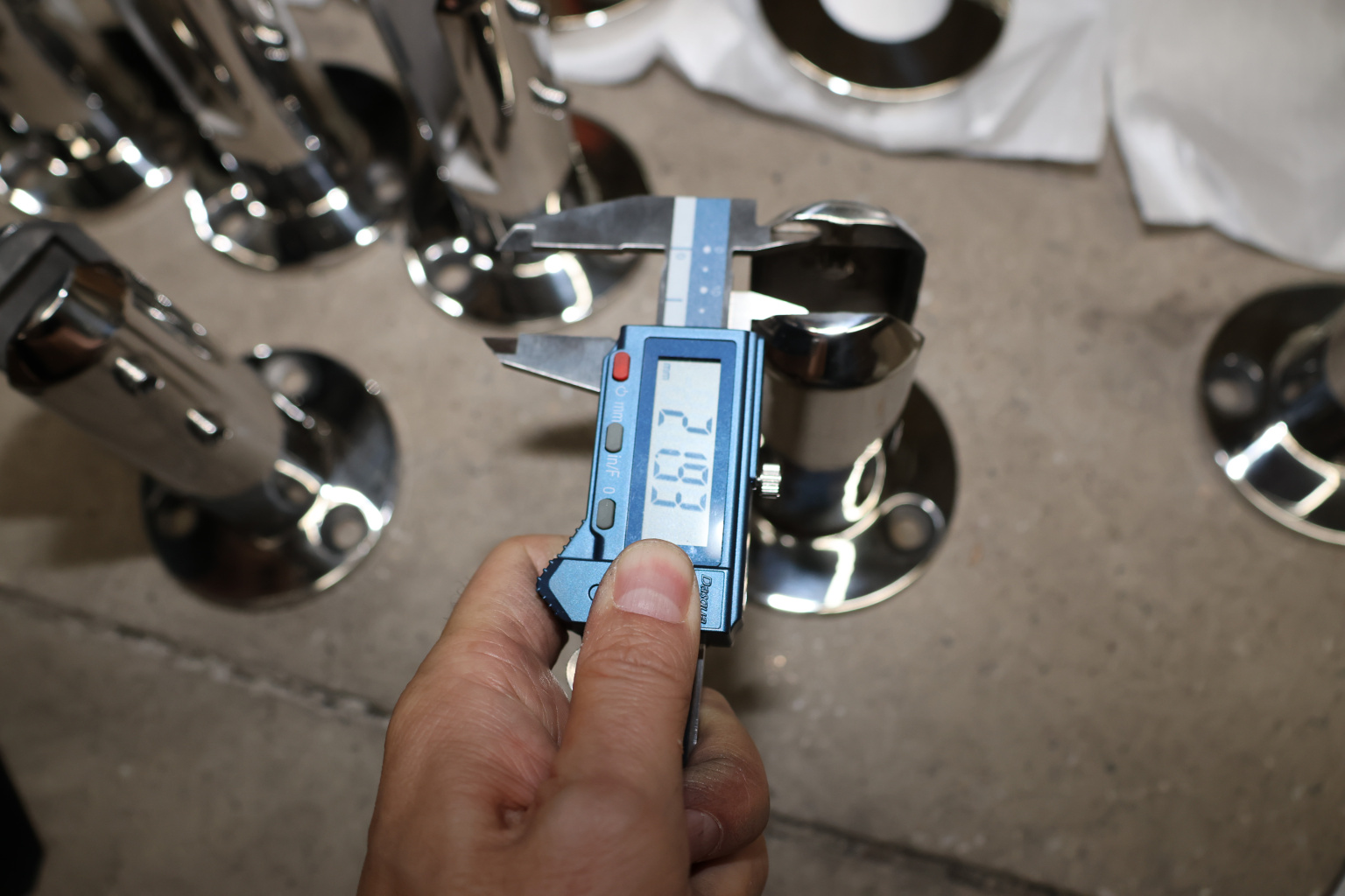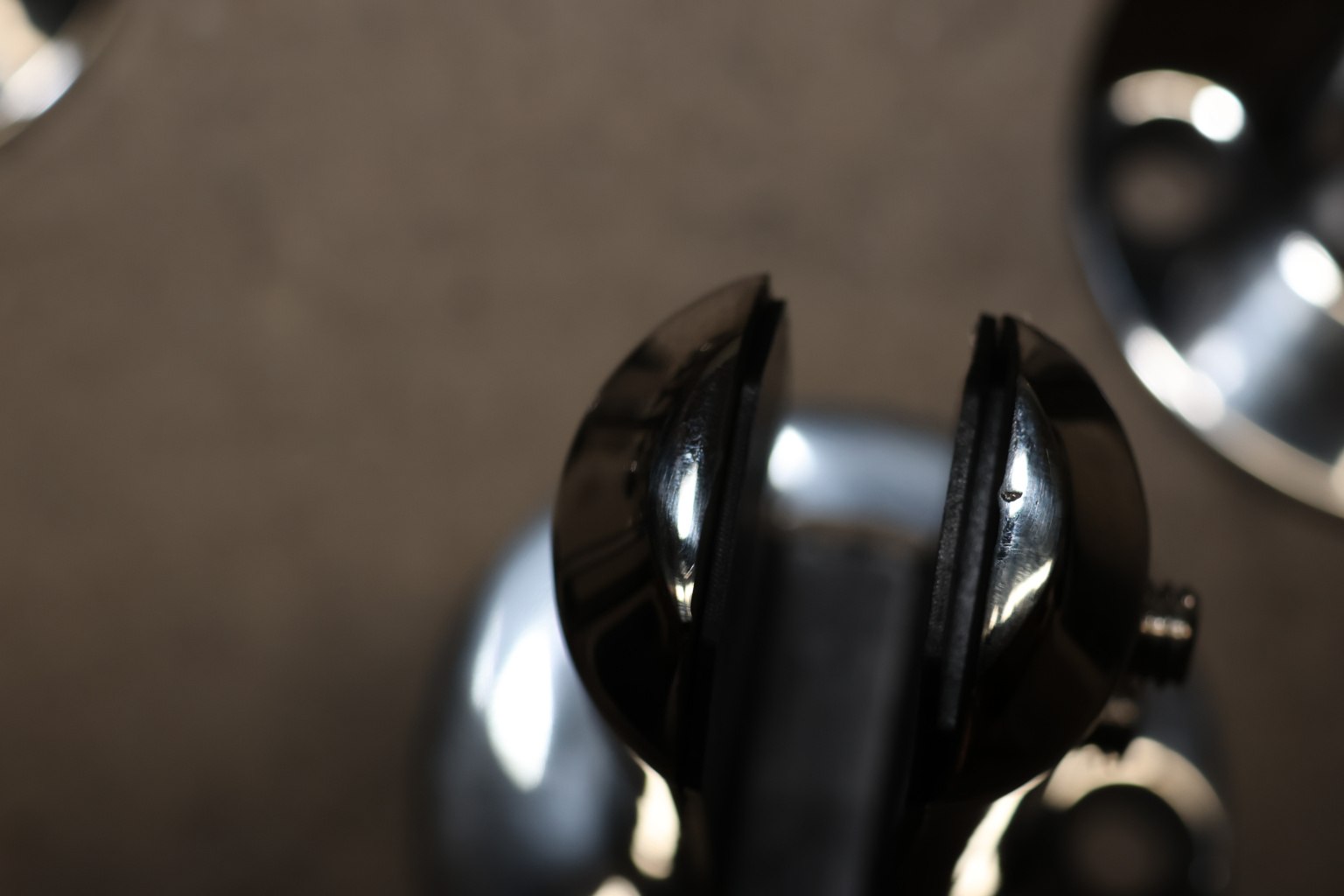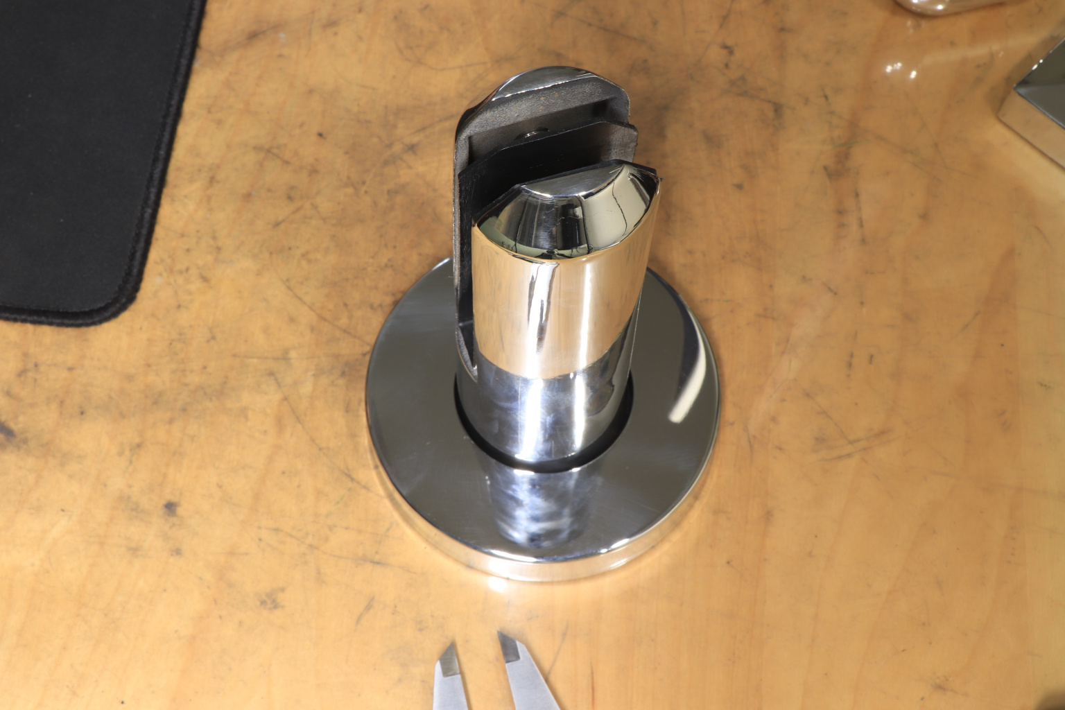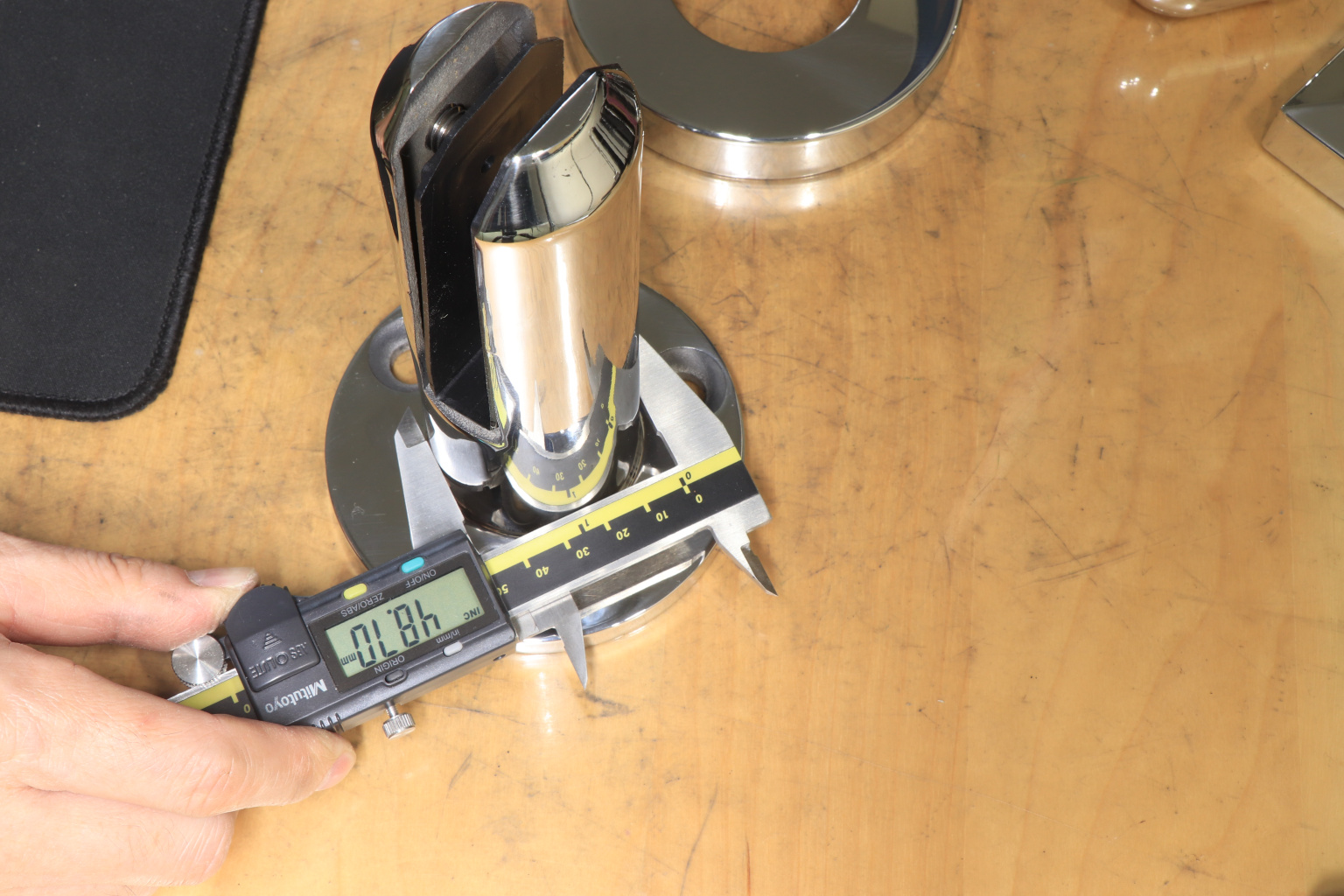 Стеклодержатель Ø50х10х18, шпилька М16х205 мм, для стекла 8-40 мм, AISI (201), с возможностью регулировки выноса до 65 мм, для торцевого крепления стекла, полированный, литой k277-3 купить в Москве
