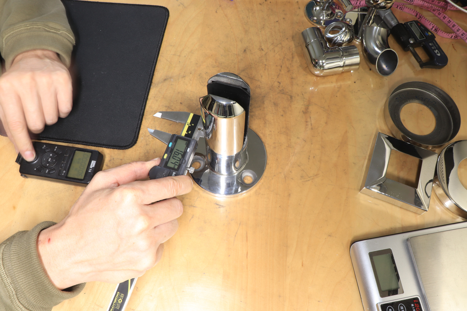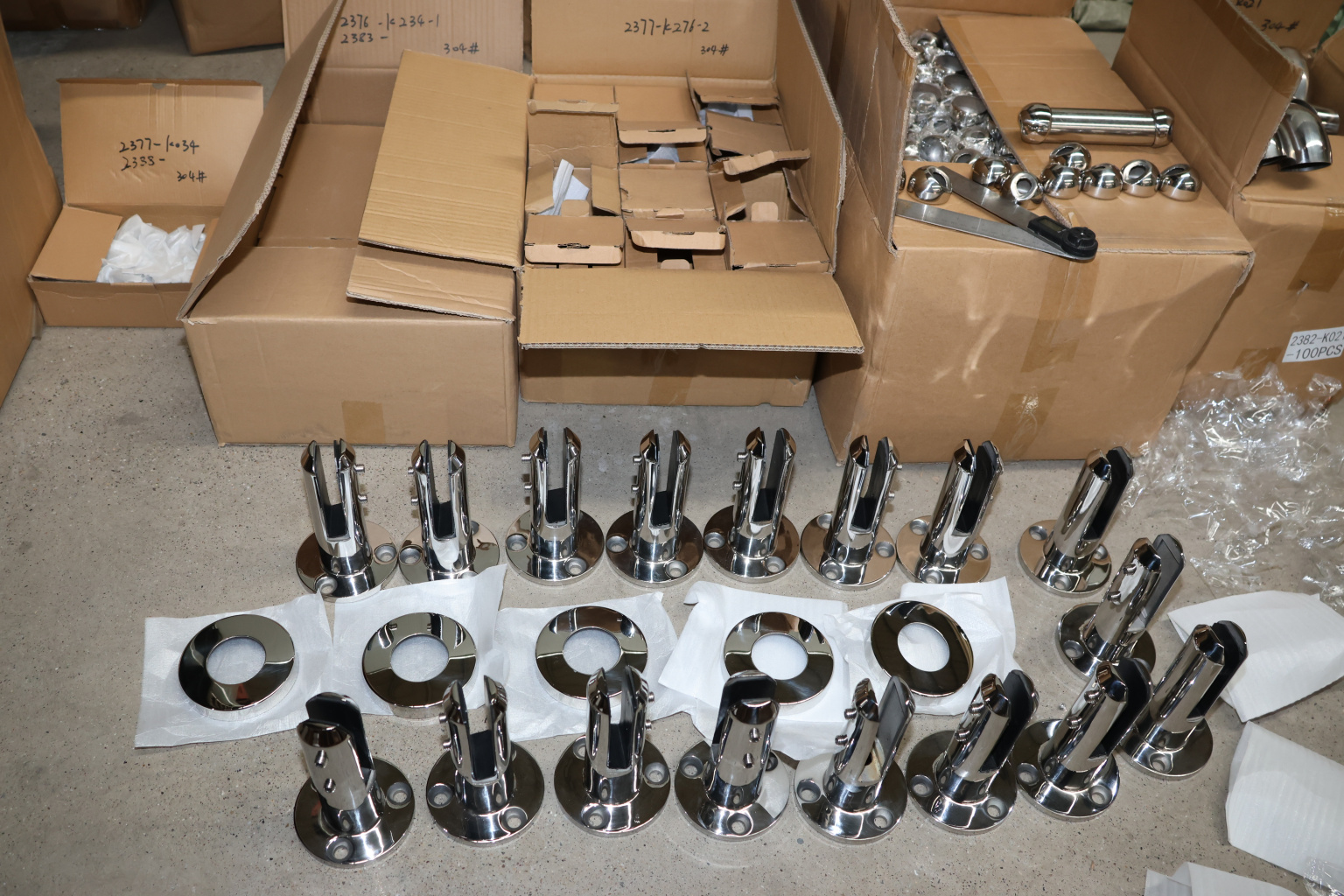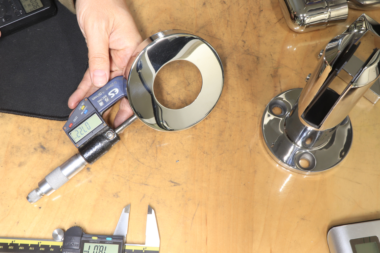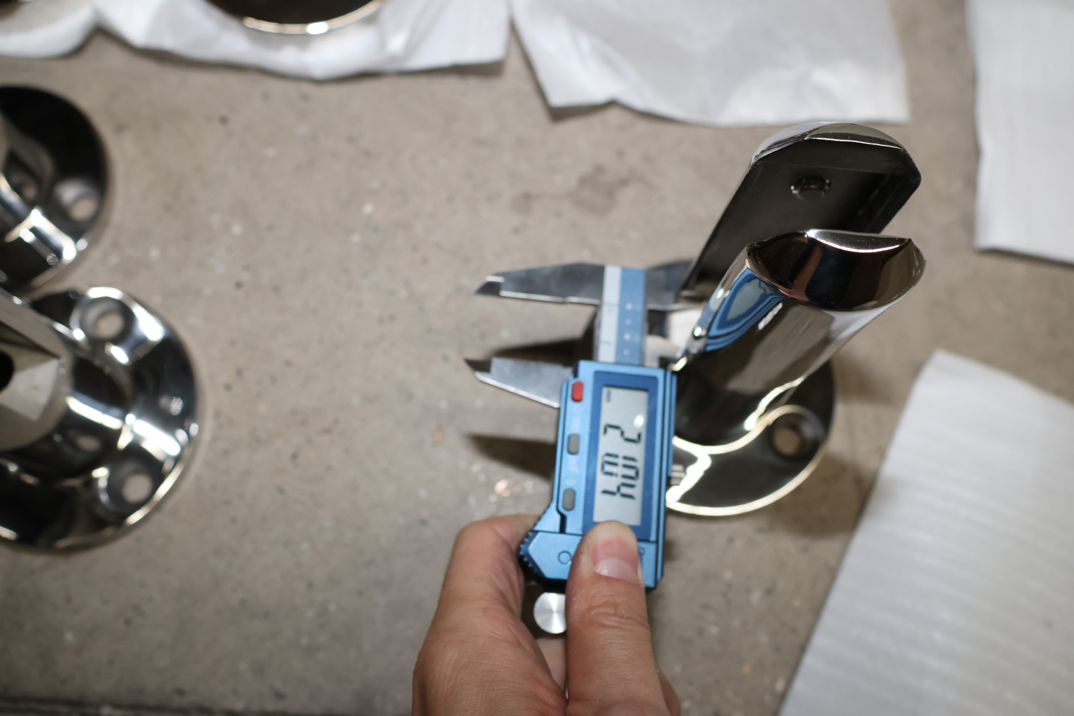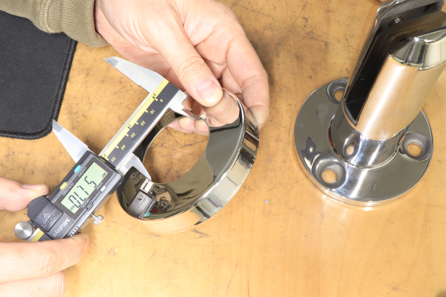 Стеклодержатель Ø50х10х18, шпилька М16х205 мм, для стекла 8-40 мм, AISI (201), с возможностью регулировки выноса до 65 мм, для торцевого крепления стекла, полированный, литой k277-3 купить в Москве