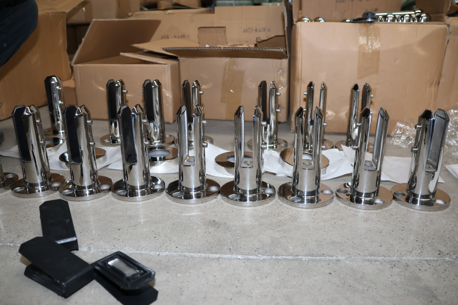Cтеклодержатель напольный, плоский 45х50х160 мм, для стекла 10 - 12 мм, полированный, без сверления стекла AISI 201 k282-201