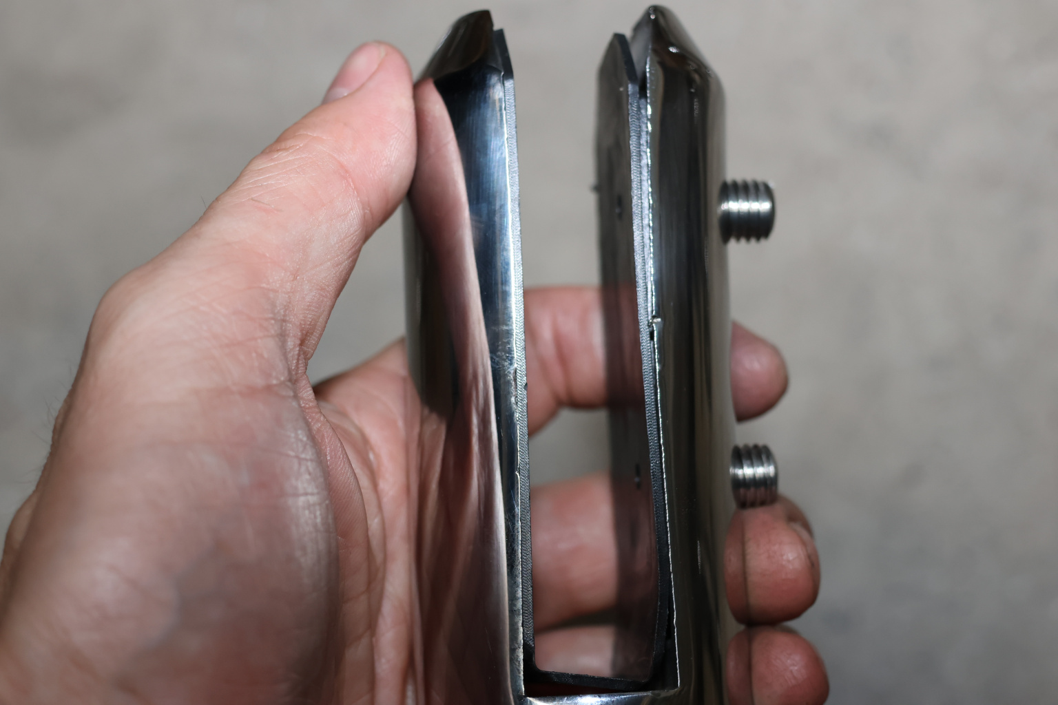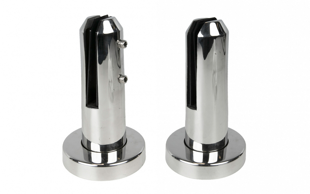 Стеклодержатель штампованный под стекло 10 мм (5+5 мм), под стойку Ø38.1 мм (39х24х55), полированный (AISI 304) k538-10