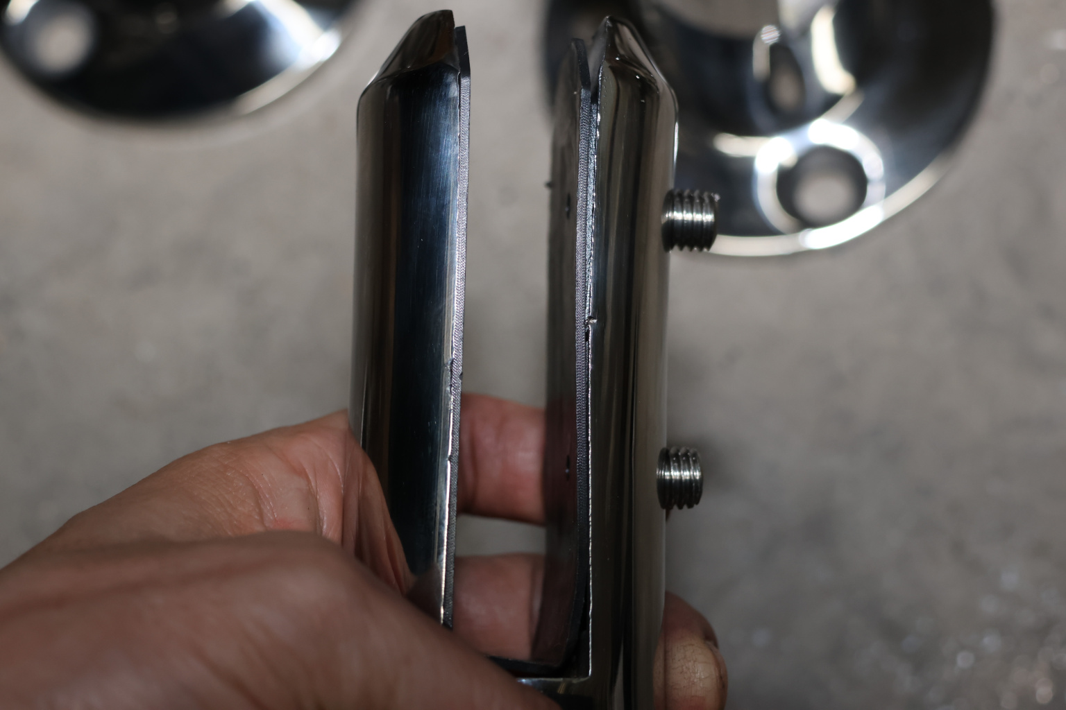 Стеклодержатель штампованный под стекло 10 мм (5+5 мм), под стойку Ø38.1 мм (39х24х55), полированный (AISI 304) k538-10 купить в Москве