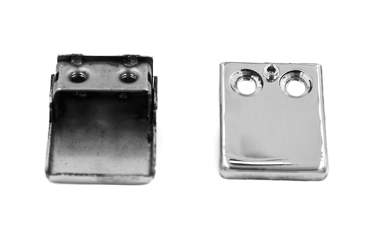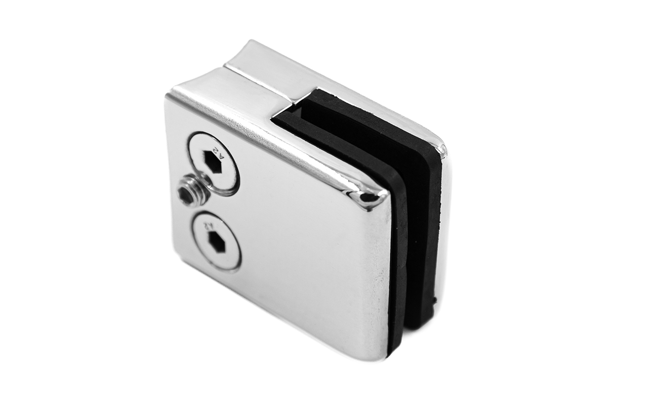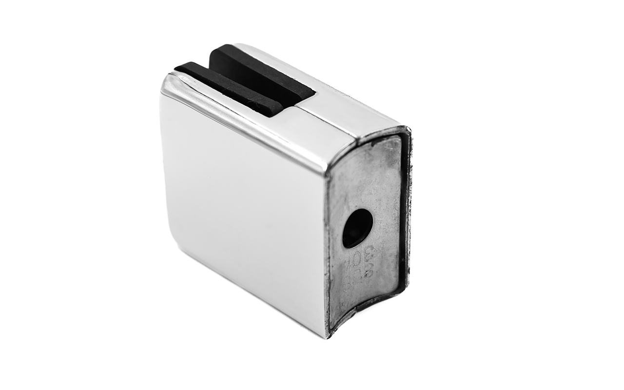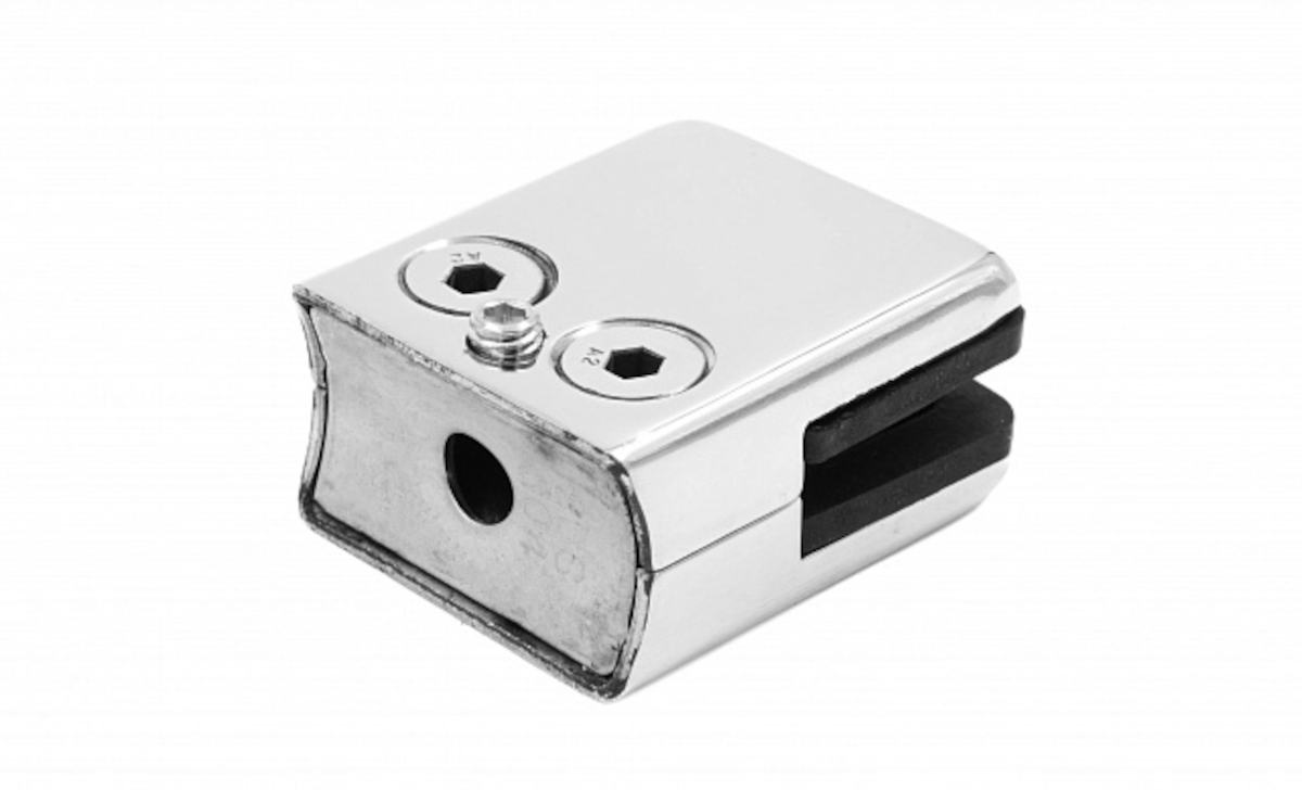 Стеклодержатель штампованный под стекло 8 мм (4+4 мм), под стойку Ø38.1 мм 40х24х55, полированный (AISI 304) k038 купить в Москве