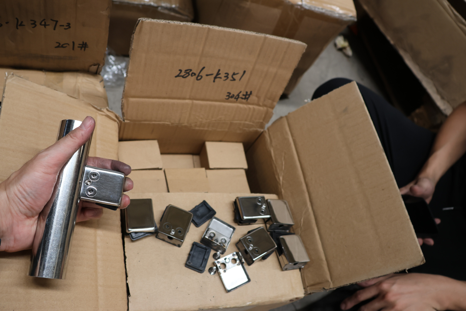 Стеклодержатель штампованный под стекло 8 мм (4+4 мм), под стойку Ø38.1 мм 40х24х55, полированный (AISI 304) k038