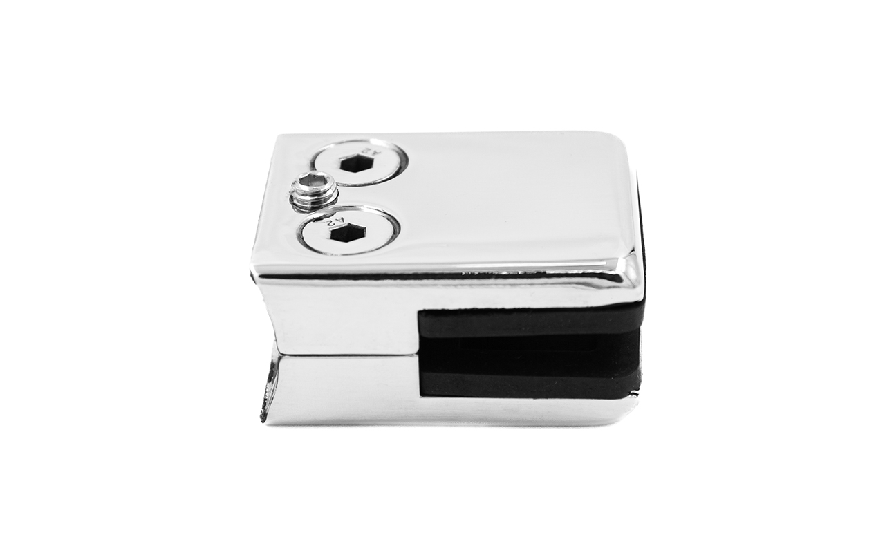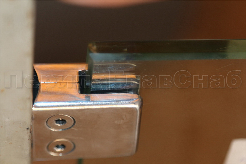 Стеклодержатель штампованный под стекло 8 мм (4+4 мм), квадратный, под стойку Ø38.1 мм (40х24х48), полированный (AISI 304) k351