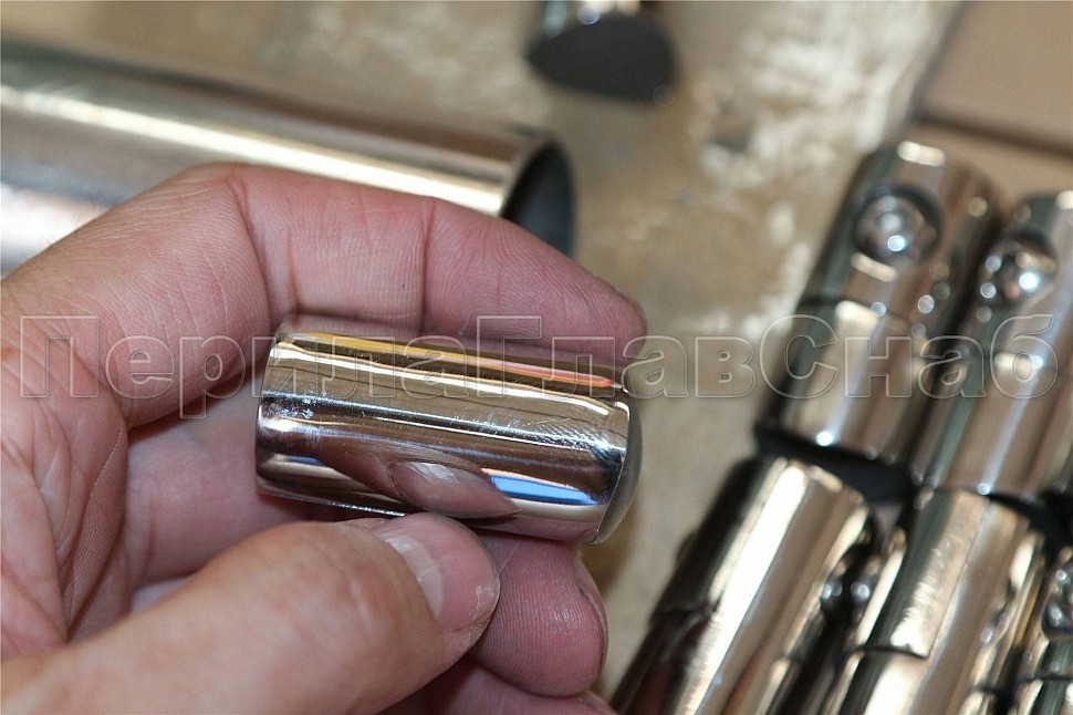 Отвод оконечный литой Ø38.1х100х1,45 мм, с круглой заглушкой, полированный 600 Grit, AISI 304, k384