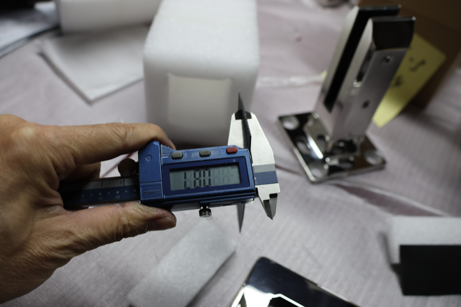 - кромку стекла можно закрыть с помощью маленького п-образного профиля из нержавеющей стали Ф-0454 Ф-0455;