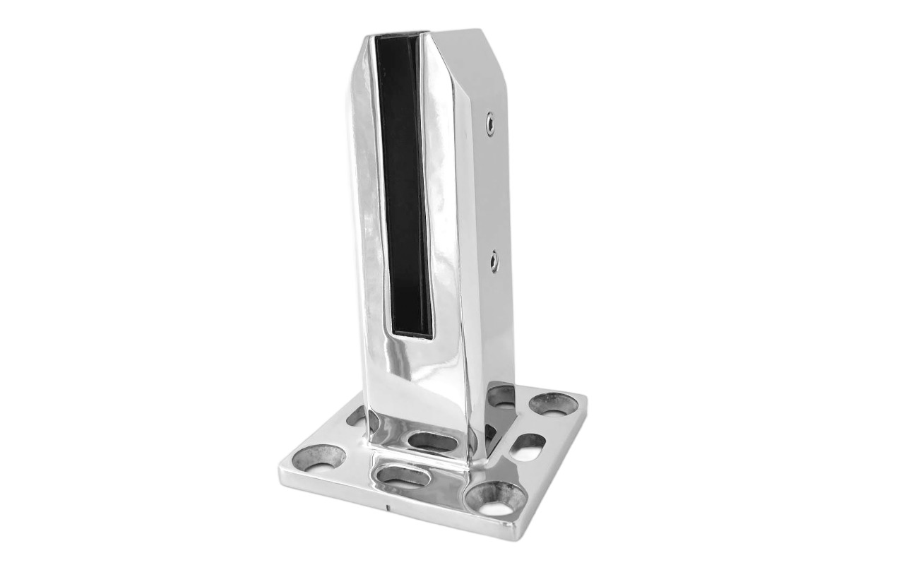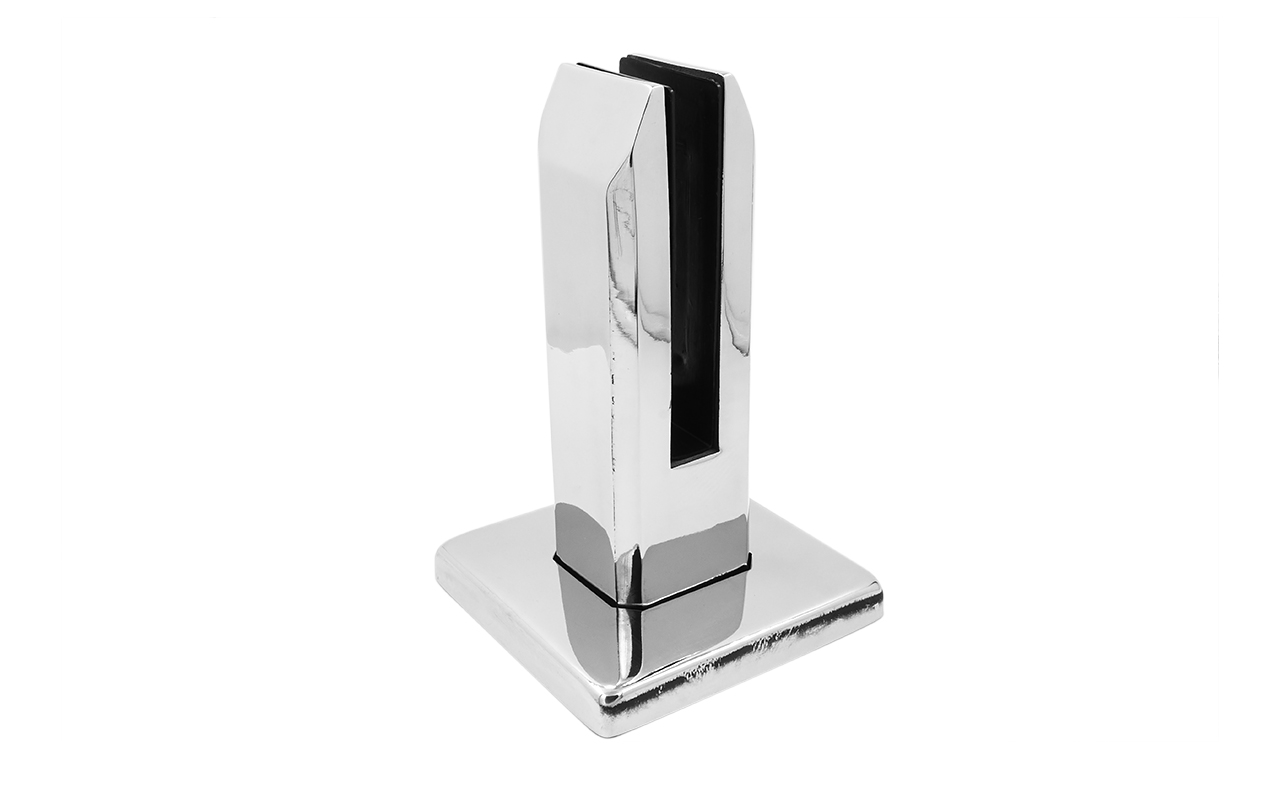 Стеклодержатель напольный 45х50х160 мм, для стекла 10-12 мм, литой, плоский, без сверления, нержавеющая сталь AISI 304, полированная k275-5