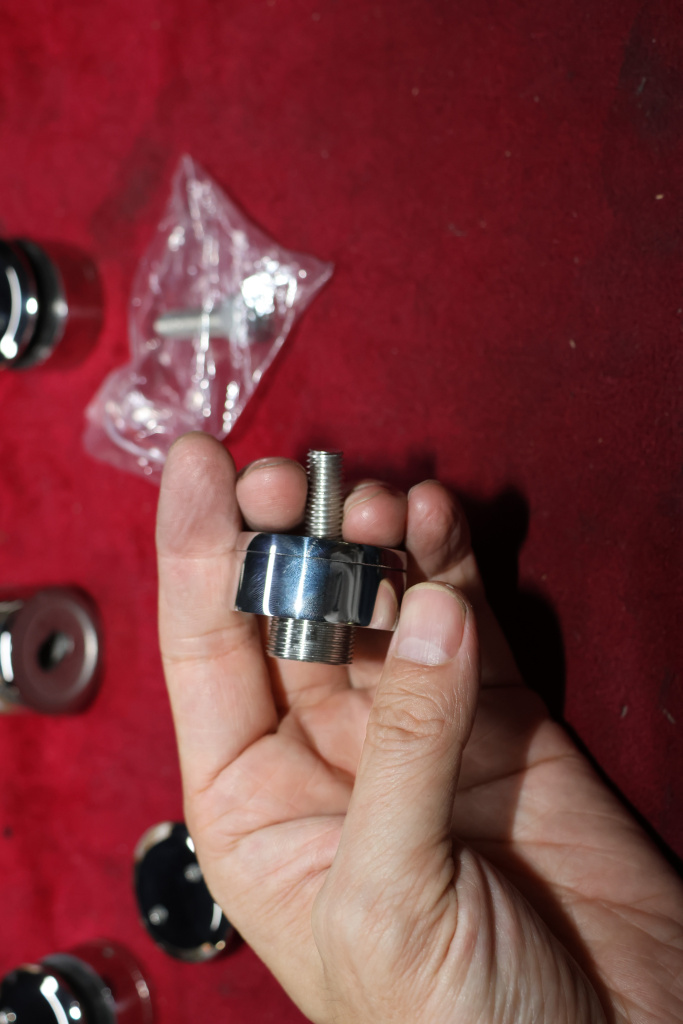 Корпус стеклодержателя приваривают или прикрепляют на саморез, либо штатный винт к стене. А в стекле делают отверстие Ø28 мм под шток стеклодержателя. Толщина стекла варьируется в диапазоне от 8 до 12 мм.