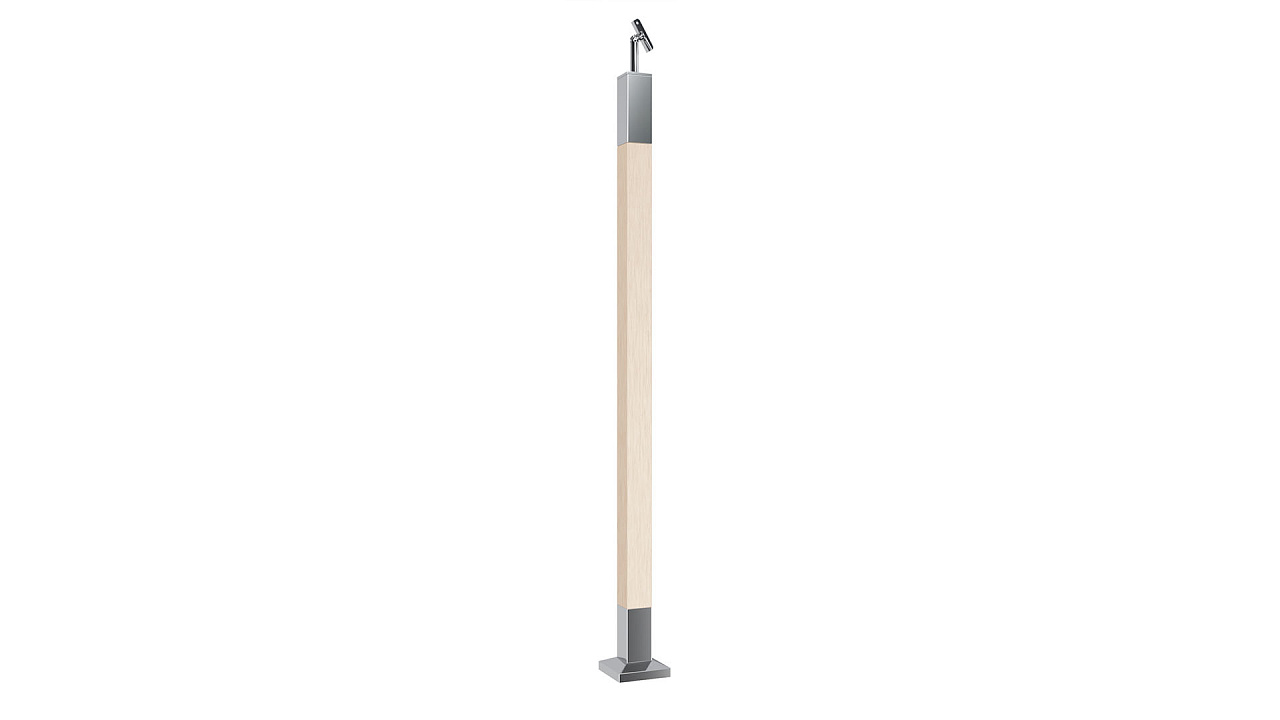 Готовая стойка 40х40х950 мм, деревянная, со вставками из нержавеющей стали 2х100 мм с 2 зажимными стеклодержателями k740-4-L купить в Москве