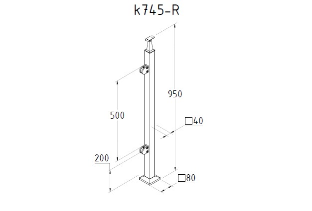 Стойка квадратная 40х40: 2 литых зажимных стеклодержателя, полированная, высота 950 мм (AISI 304) k745-R