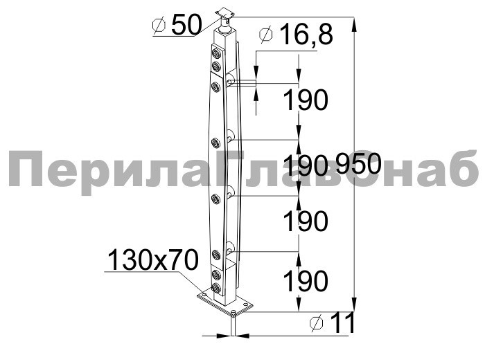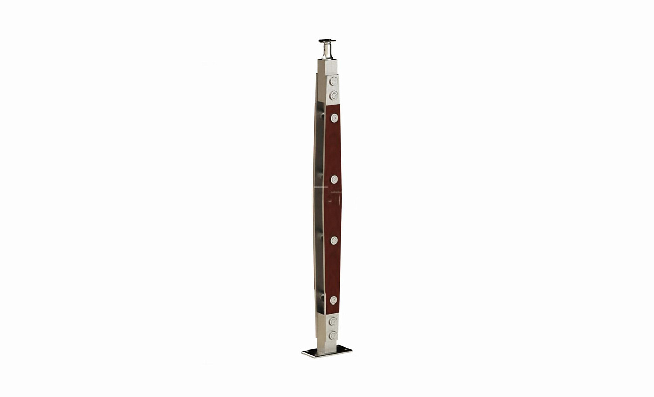 Стойка эксклюзивная с деревянной вставкой и 4 ригеледержателями, крепление в пол, нерегулируемый ложемент (AISI 304) k780