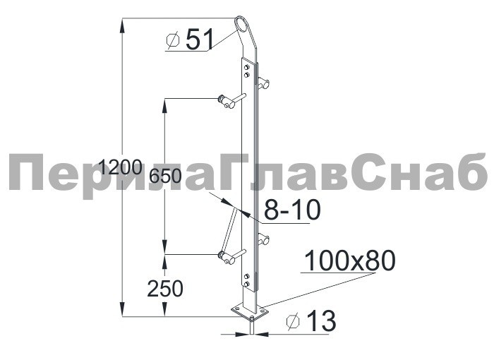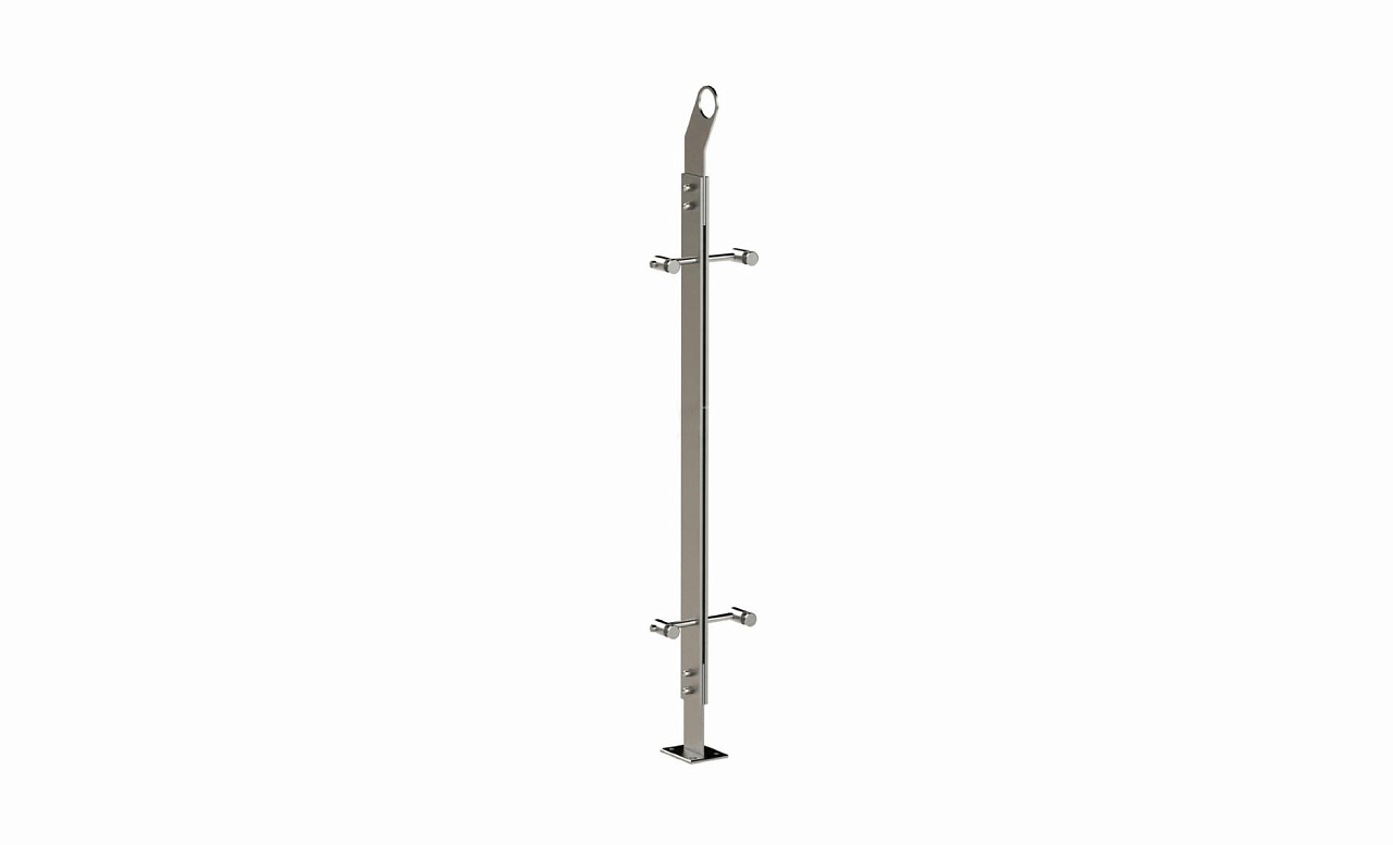 Стойка эксклюзивная из двух пластин с двумя спайдерными стеклодержателями, крепление в пол, нерегулируемый ложемент с обхватом (aisi 304)