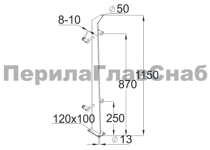 Cтойка эксклюзивная с двумя спайдерными стеклодержателями, крепление в пол, нерегулируемый ложемент (aisi 304)