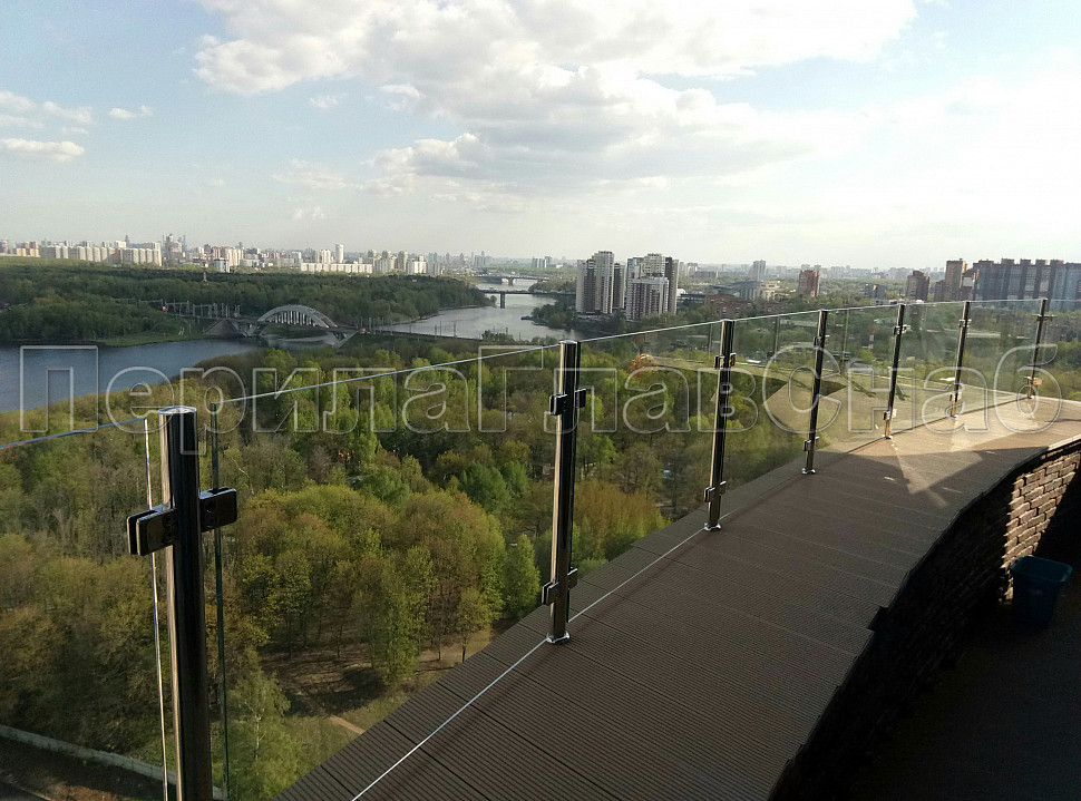 Cтойка круглая Ø38.1: 4 литых зажимн. стеклодержателя, полированная, высота 950 мм (aisi 304)