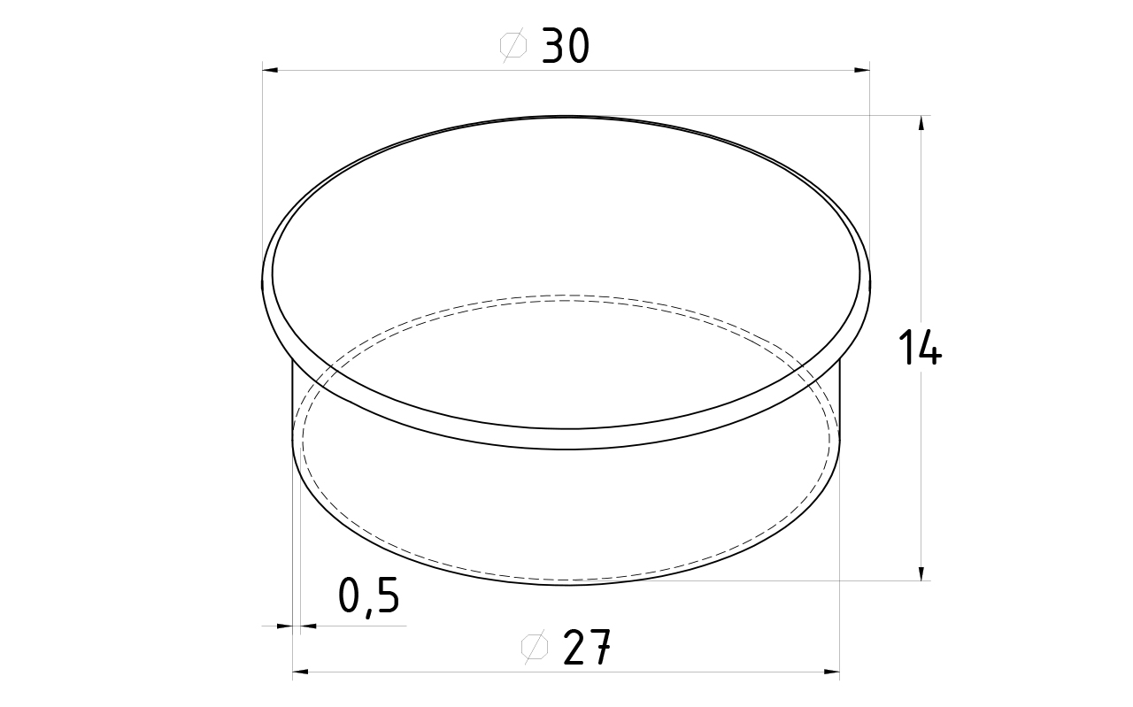 Заглушка штампованная Ø30, 0,5 мм, для трубы 1-1,2 мм, полированная, марка стали - AISI 304