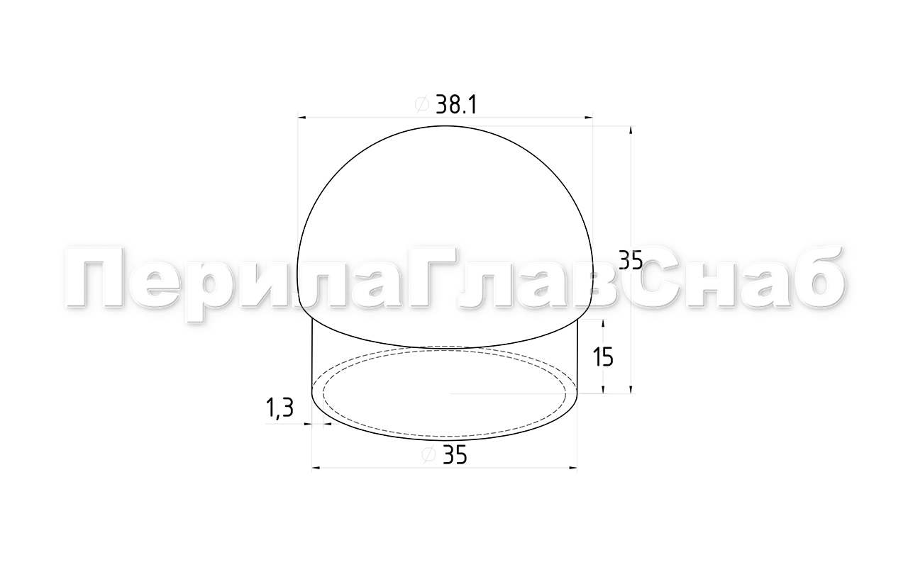 Полированная заглушка, литая, сферическая, для трубы Ø38.1х1.45 мм, полированная