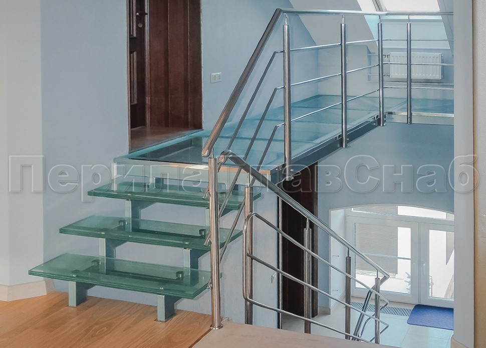 В компании «ПерилаГлавСнаб» вы можете купить лестницы со стеклом различных конфигураций: