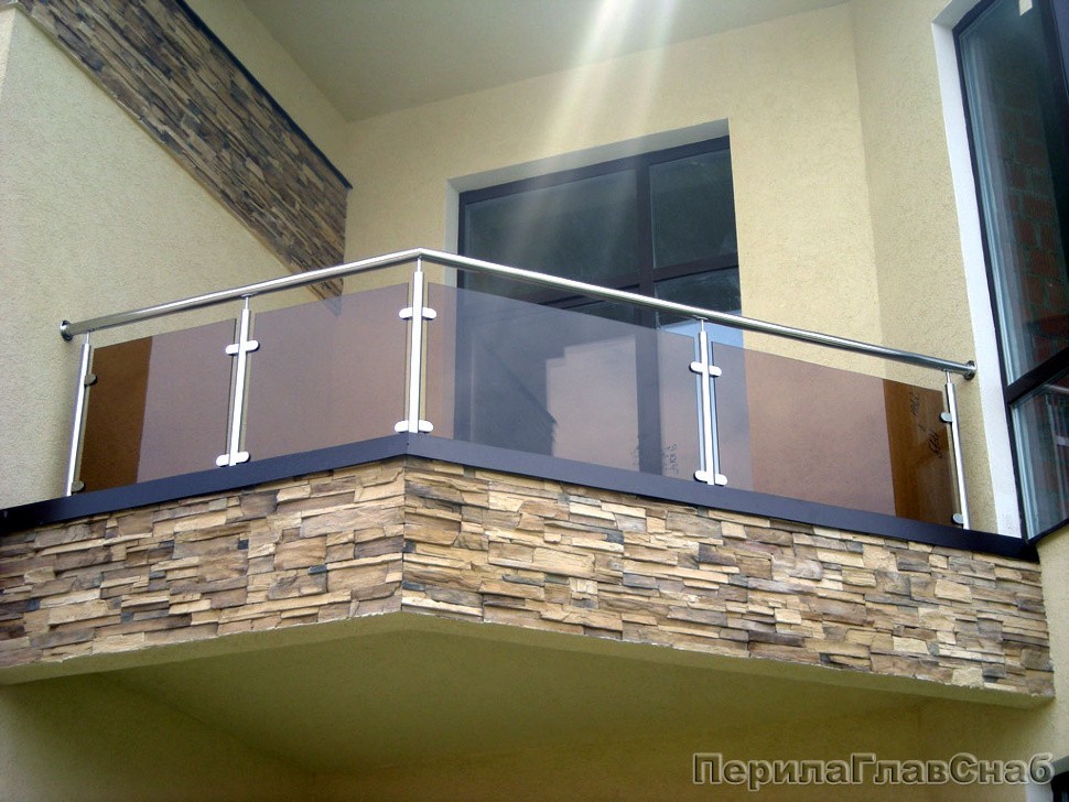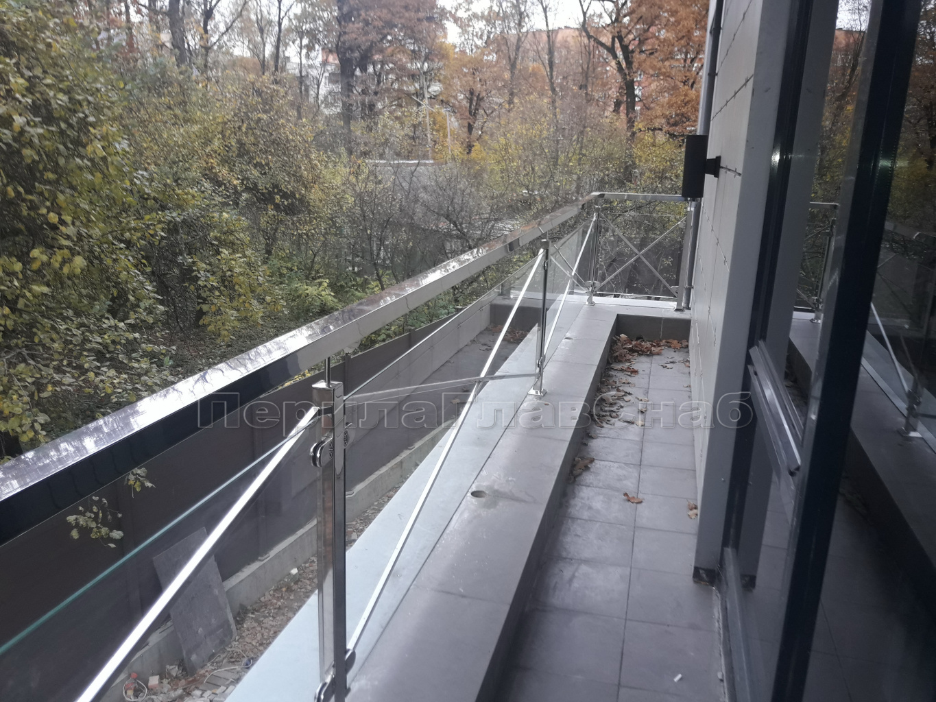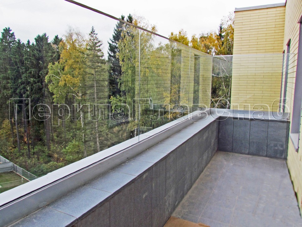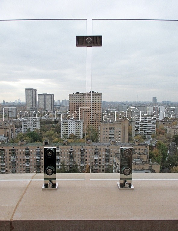Данный тип ограждений выдерживает большие нагрузки, за счёт увеличенной толщины стекла: триплекс 8 мм + 8 мм закаленный или 15 мм.