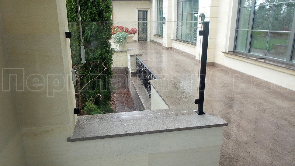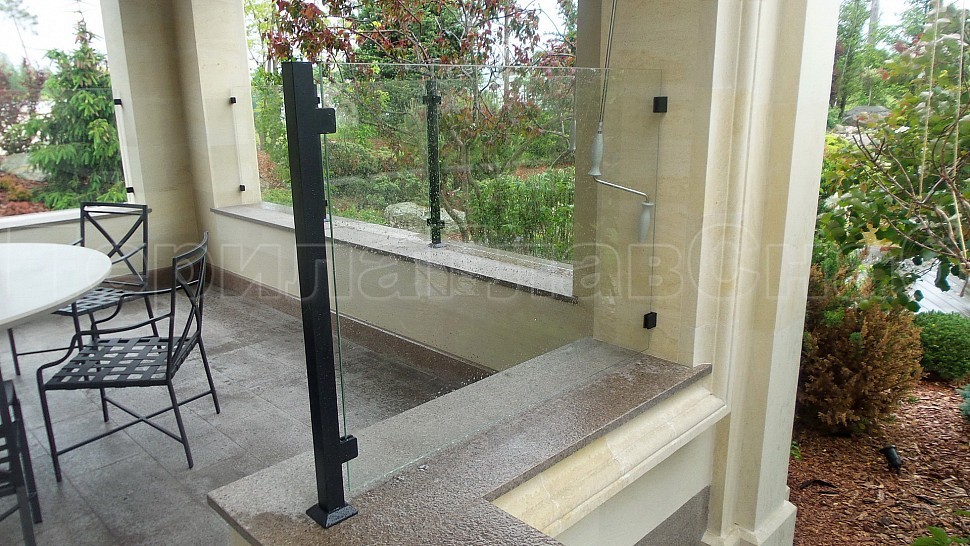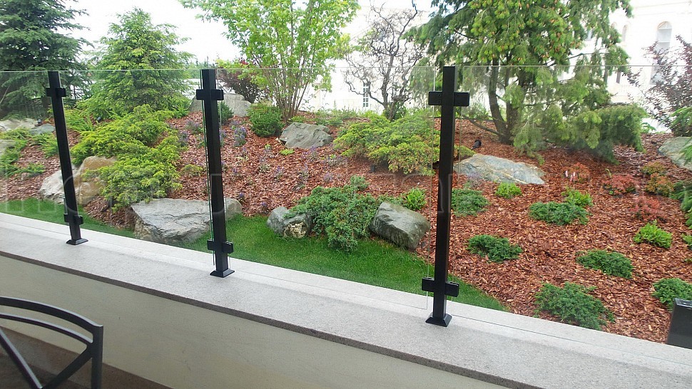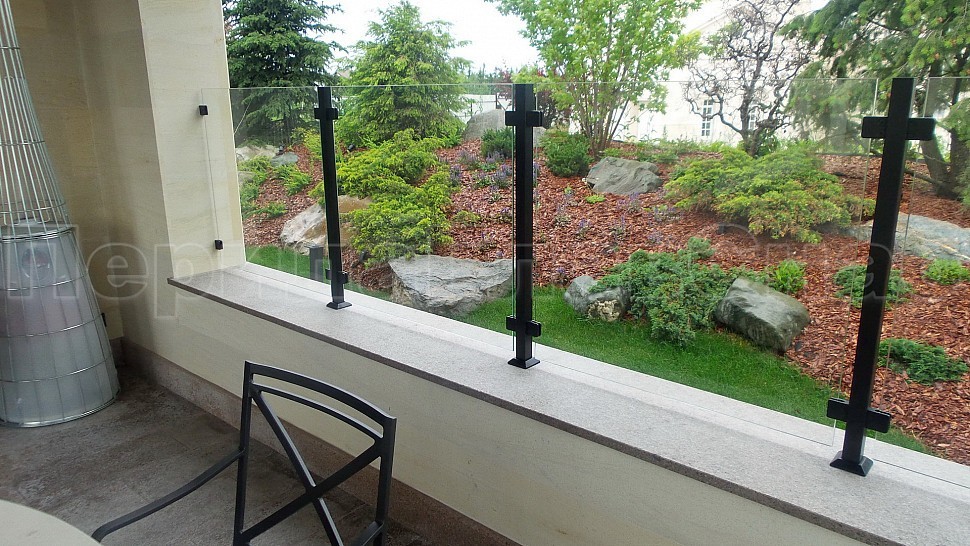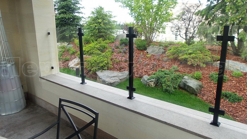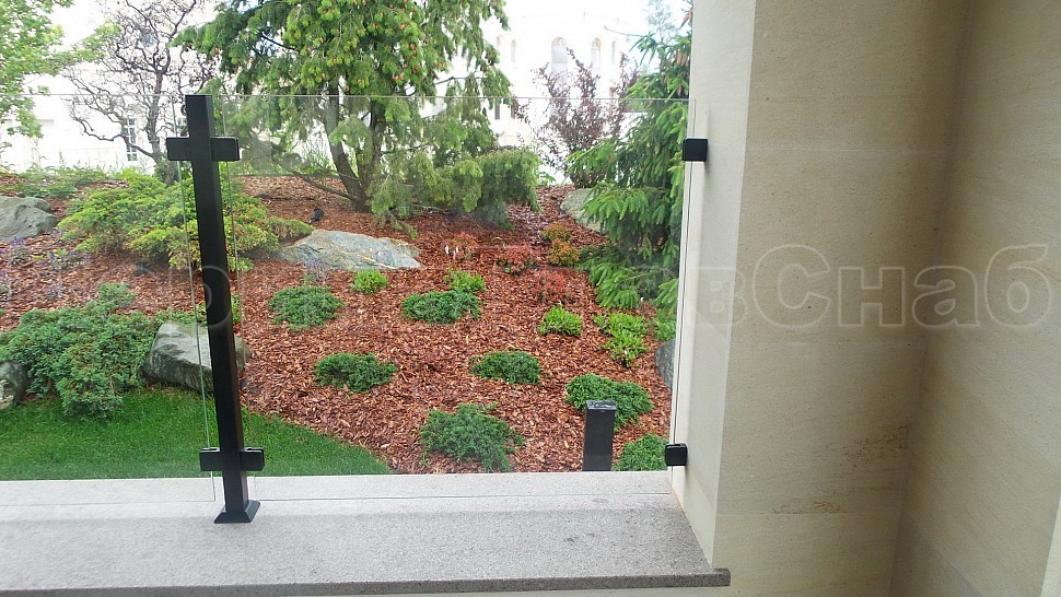 Нашими проектировщиками был проведен замер и предложен вариант конструкции, который очень подошел клиенту: восемь погонных метров ограждений со шлифованными стойками, окрашенными в черный цвет порошковым методом. Между стойками на зажимных стеклодержателях крепятся стекла толщиной 8мм, преданные закалке для большей прочности и безопасности конструкции. Так как стеклодержателей отличается универсальностью, по краям конструкции стекла крепятся на них же к стене - это придает большей гармоничности всего ограждения и экономит больше места.