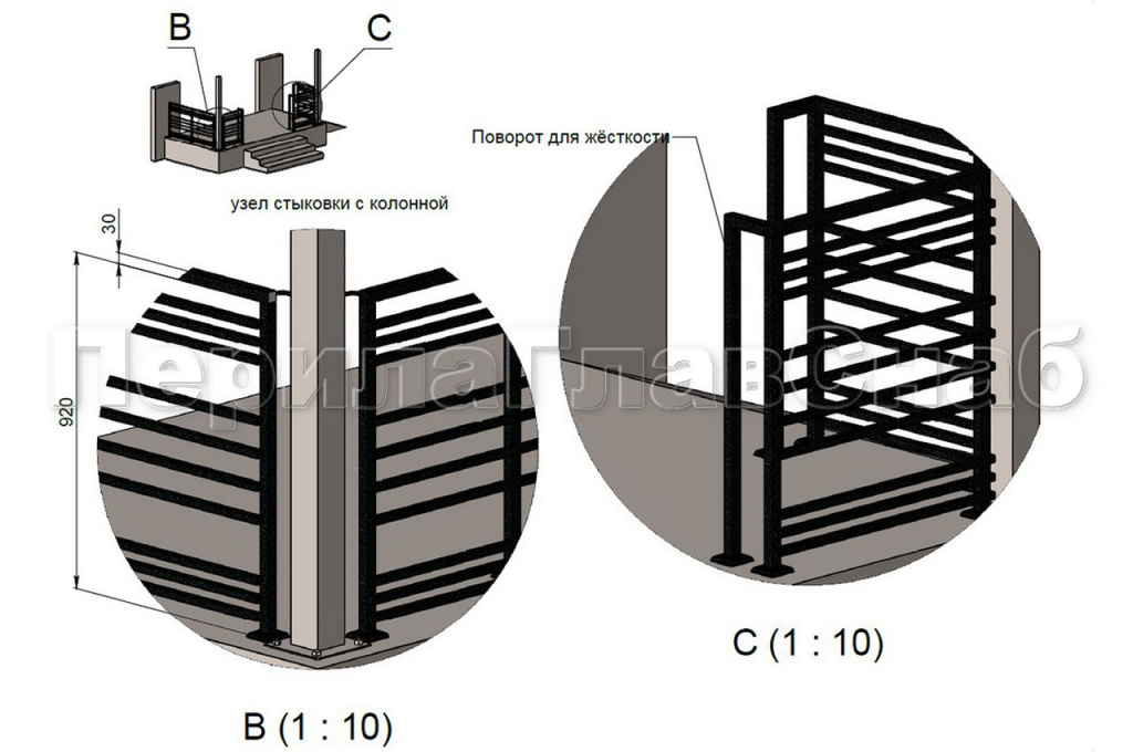 К нам в компанию обратился заказчик, с просьбой помочь изготовить и смонтировать тридцать пять погонных метров ограждений в частном доме, находящегося в коттеджном поселке класса De Luxe «Променад». Чтобы ограждения вписывались в общую концепцию экстерьера участка, мы предложили заказчику покрыть ограждения порошковой краской по каталогу Ral. А, для того чтобы избежать в дальнейшем коррозии металла мы использовали трубу и комплектующие из шлифованной нержавеющей стали. На шлифованную поверхность порошковая краска ложиться равномерно и помогает избежать, вздутия и в дальнейшем отслоения краски от металла. Для согласования с заказчиком конструктива и общего вида ограждений, нашим конструктором был разработан чертеж. Чертеж дает возможность заказчику понять где и как у него будут установлены перила и в случае возникновения дополнительных пожеланий внести корректировки до начала монтажа. Конструкция ограждения была выполнена из профильной трубы квадратного сечения, стойки и поручень труба 30*30мм, заполнение между стойками труба 20*20мм. Покраска порошковой краской должна производиться в заводских условиях с соблюдением всех технологических нюансов, в покрасочной камере. Так как покрасочная камера имеет определенные размеры то для этого необходимо было разделить ограждения на секции. Работы по изготовлению ограждений проводились в несколько этапов, первым этапом был монтаж секций ограждений на объекте, затем его демонтаж для транспортировки в покрасочную камеру, после покраски секции доставлялись на объект для дальнейшего монтажа. Места сварки секций были зачищены, зашлифованы и подкрашены вручную, что никак не испортило внешний вид ограждений. Работы по изготовлению и монтажу ограждений под ключ, были выполнены и сданы в течение тридцати рабочих дней.