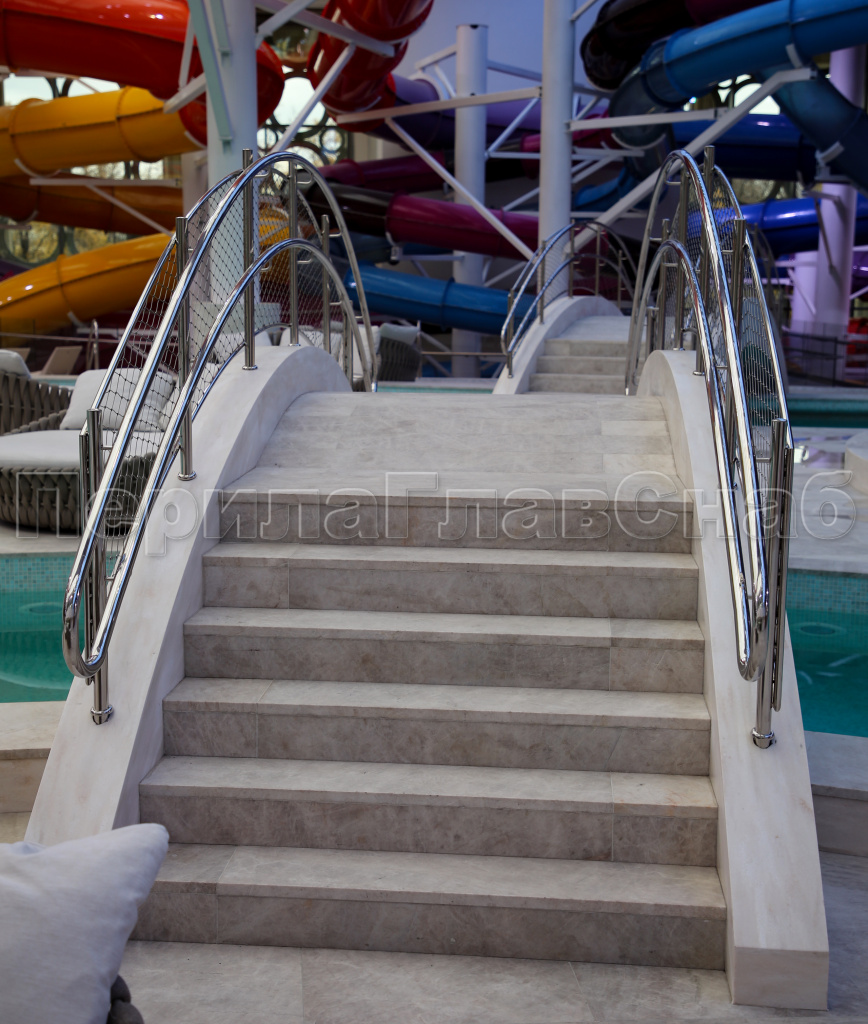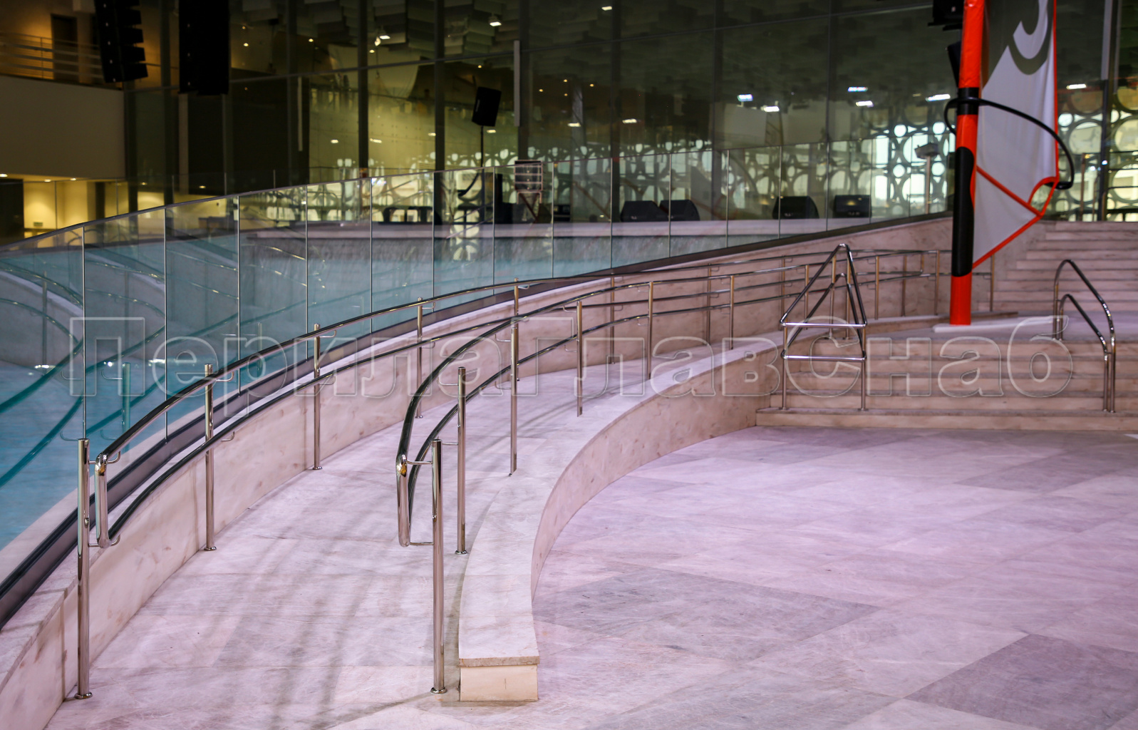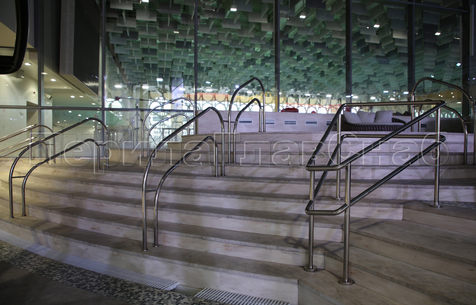 2) Ограждения и поручни должны быть безопасными и антивандальными в связи с тем, что на данном объекте ожидается большое количество посетителей разных возрастов, вместимость Аквакомплекса 10 000 человек.