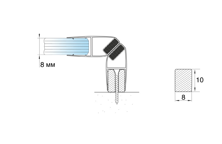 используется в качестве пристенного притвора для распашных и раздвижных стеклянных дверей. Предназначен для монтажа магнитных ПВХ-профилей на стену. Позволяет добиться максимальной герметичности примыкания двери в стене.