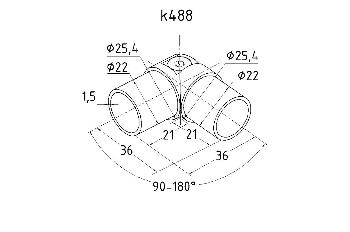 Поворот литой, шарнирный под Ø25.4 мм, полированный, AISI 304 k488