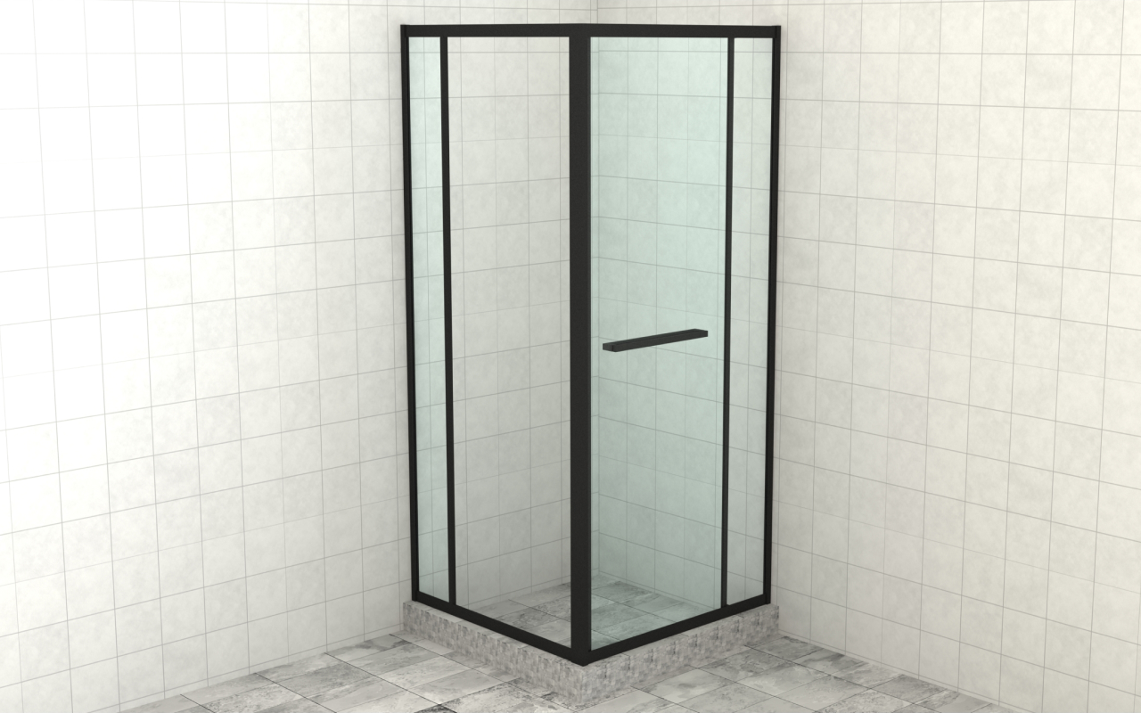 Комплект душевой с внутренней подвижной дверью,толщина стекла 8мм, 900х900х2000, AUSI 304, черная t470 Bl