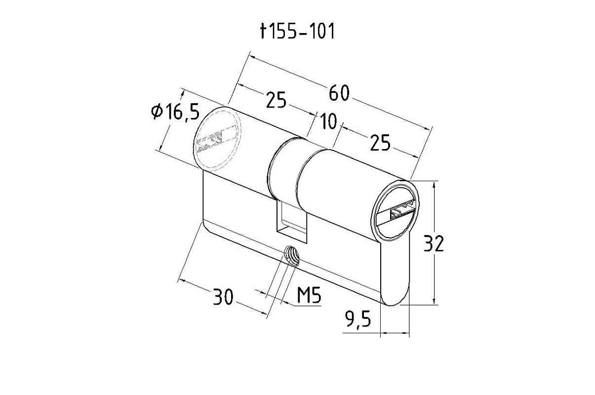 Личинка латунная 30х30мм для замка t155 ключ-ключ t155-101 SSS