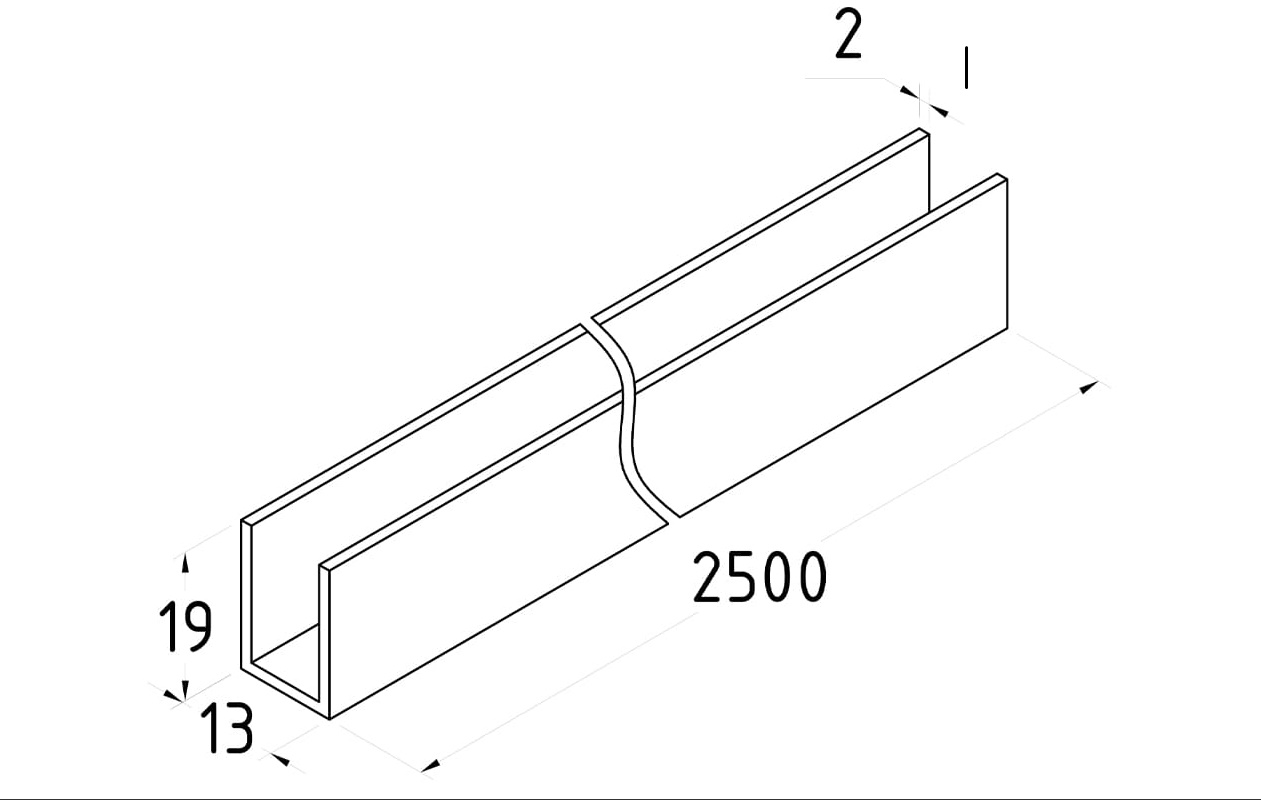 П-образный профиль 19x13, L=2500, алюминий шлифованный t756-4-2500 ALS