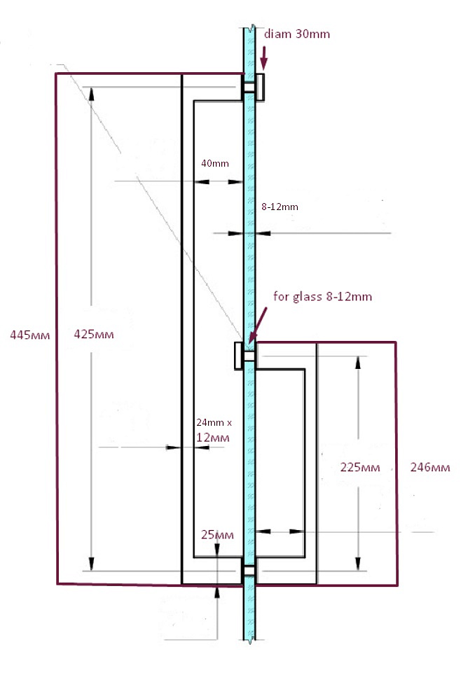 Ручка 225х425 круглая+квадратная труба AISI 304 черная t628 BL