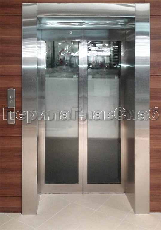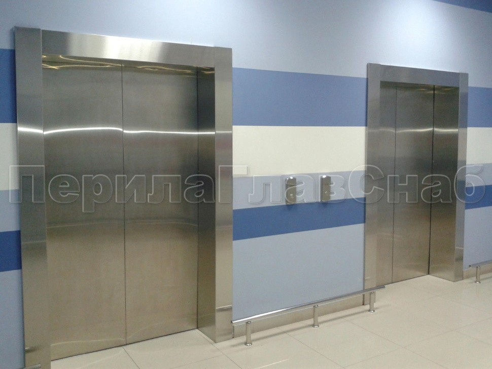 Для зрительного выделения лифтовых порталов используют листы нержавеющей стали или специальные стеклянные вставки. Стекло устойчиво к царапинам и легко моется. Кроме того, такое покрытие является отличной площадкой для размещения настенной рекламы. Шлифованная нержавеющая сталь является классическим вариантом обрамления лифтового портала. Довольно часто используют декоративные листы нержавейки, например, с нерегулярным рисунком. Он прекрасно скроет все потертости и царапины, которые возникают на поверхности облицовки.