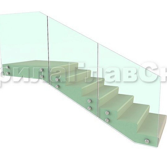 Ограждение для лестницы на несущем стекле с точечным креплением в торец для крыльца