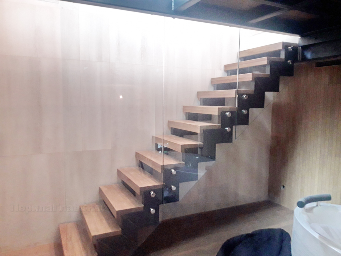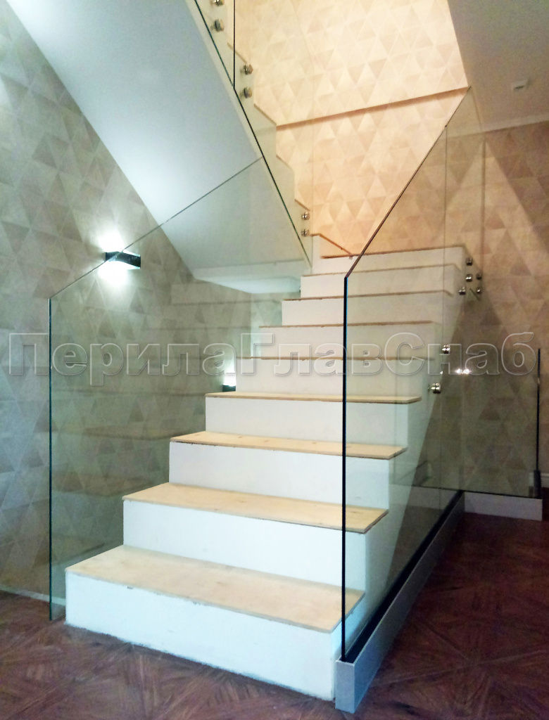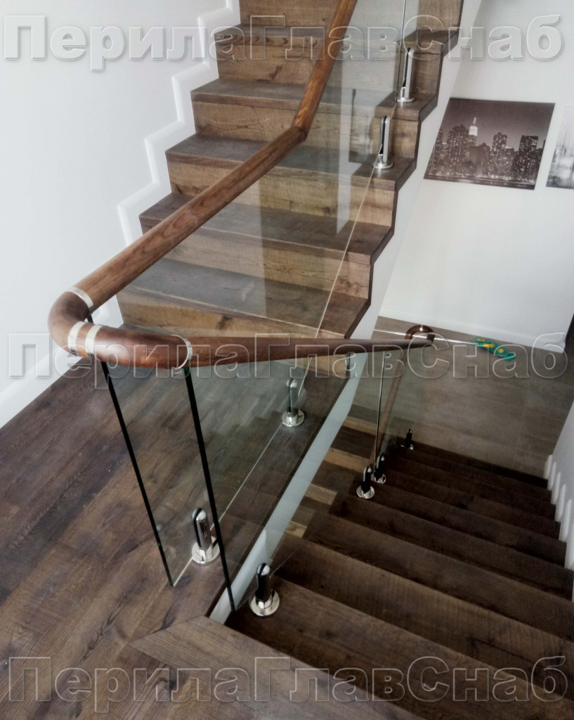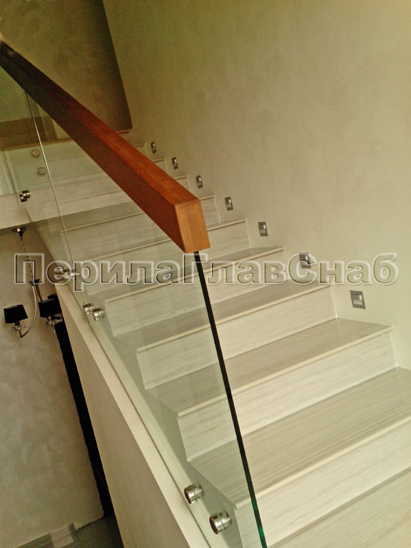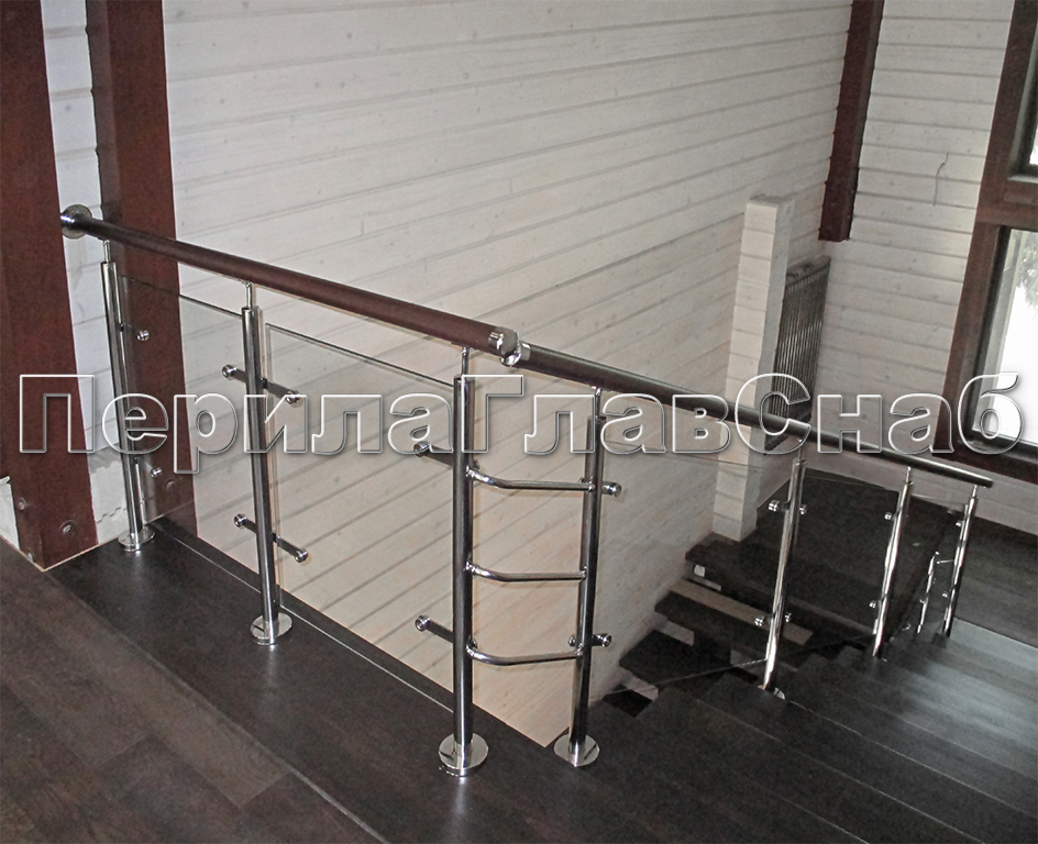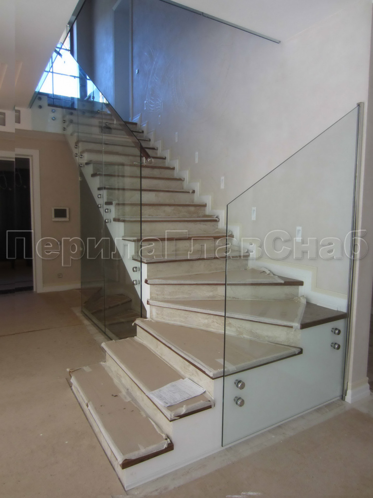 Комбинированные конструкции из стали со стеклом. Такие перила преобразят мраморную лестницу и станут настоящим украшением для интерьера. Они не только эстетично выглядят, но и отличаются простотой ухода. Богатый выбор стекла и комплектующих позволяет воплощать в жизнь самые смелые архитектурные решения. Еще одним достоинством комбинированных перил является безопасность. Такие конструкции изготавливаются из закаленного стекла и триплекса. Толщина материала составляет 8 или 10 миллиметров в зависимости от расстояния между стальными стойками.