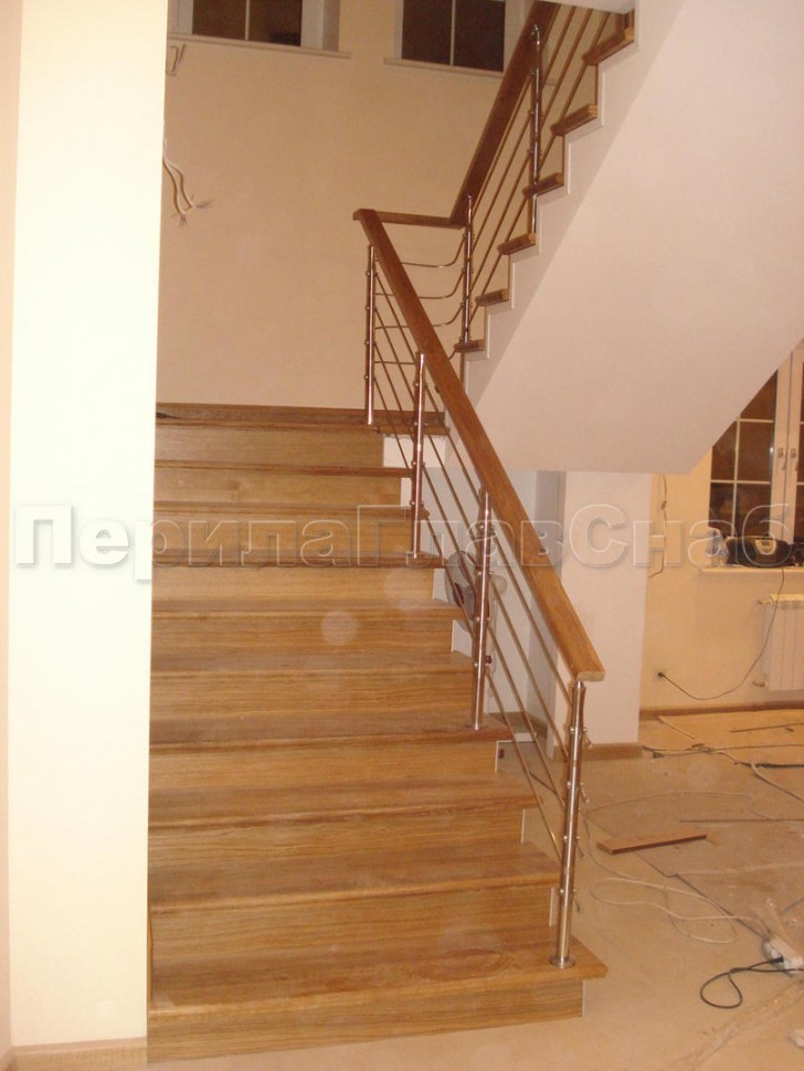 Записаться на встречу Два ригеля на держателях, квадратный деревянный поручень и круглые стойки