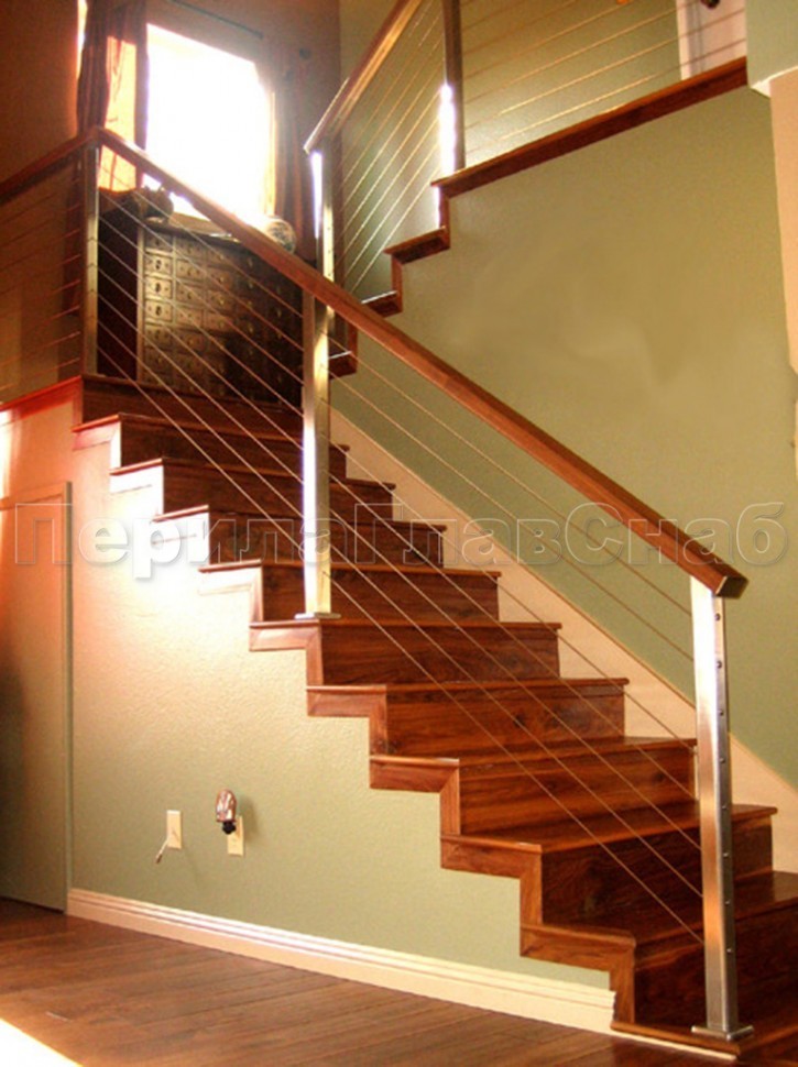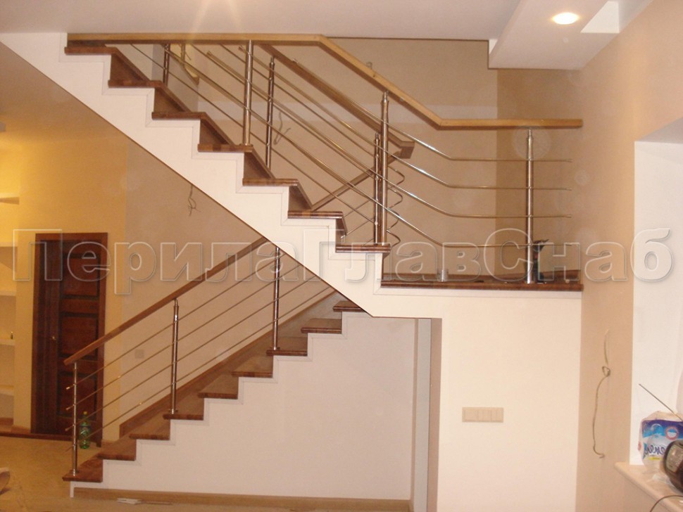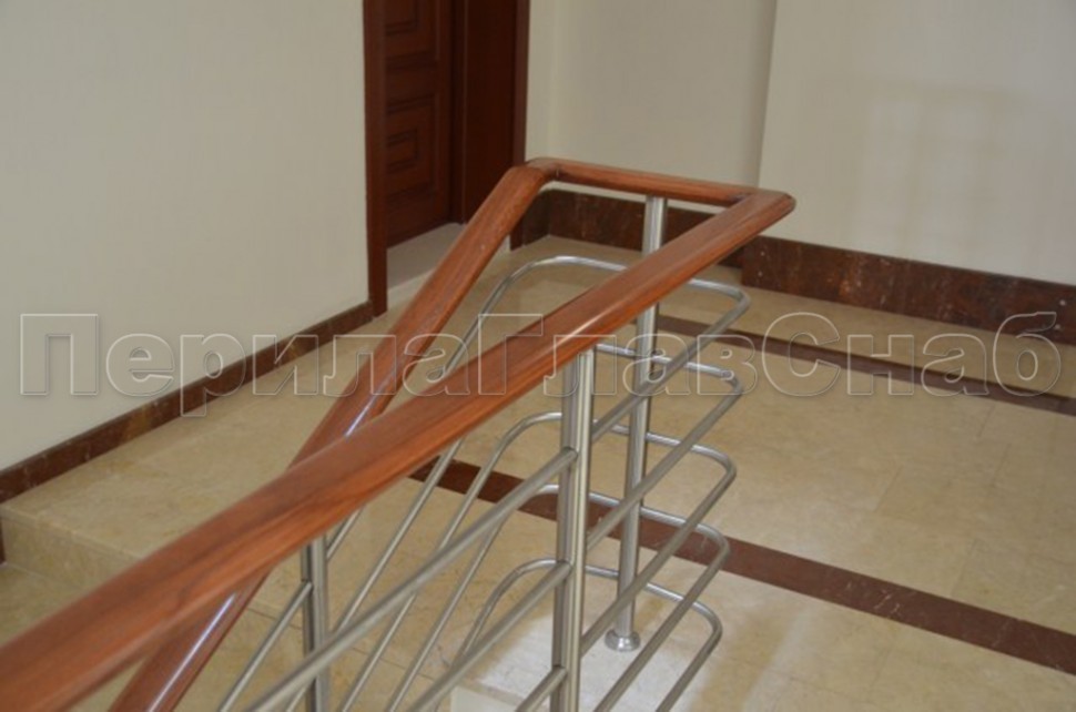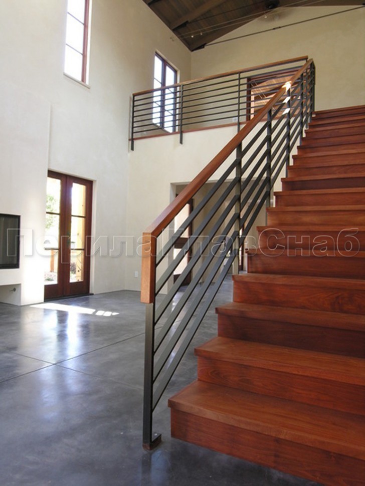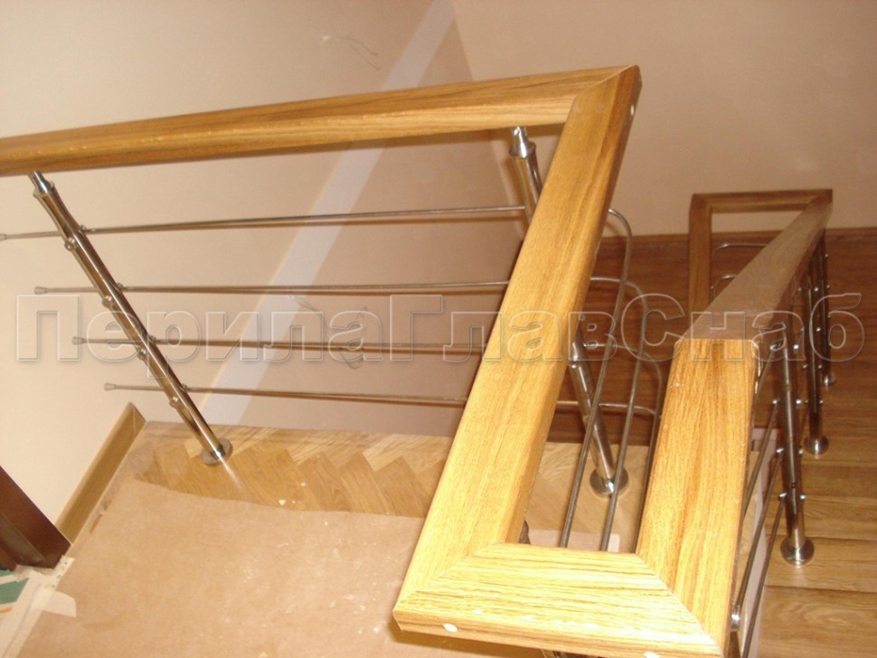 Записаться на встречу Два ригеля на сварке, квадратный деревянный поручень и круглые стойки