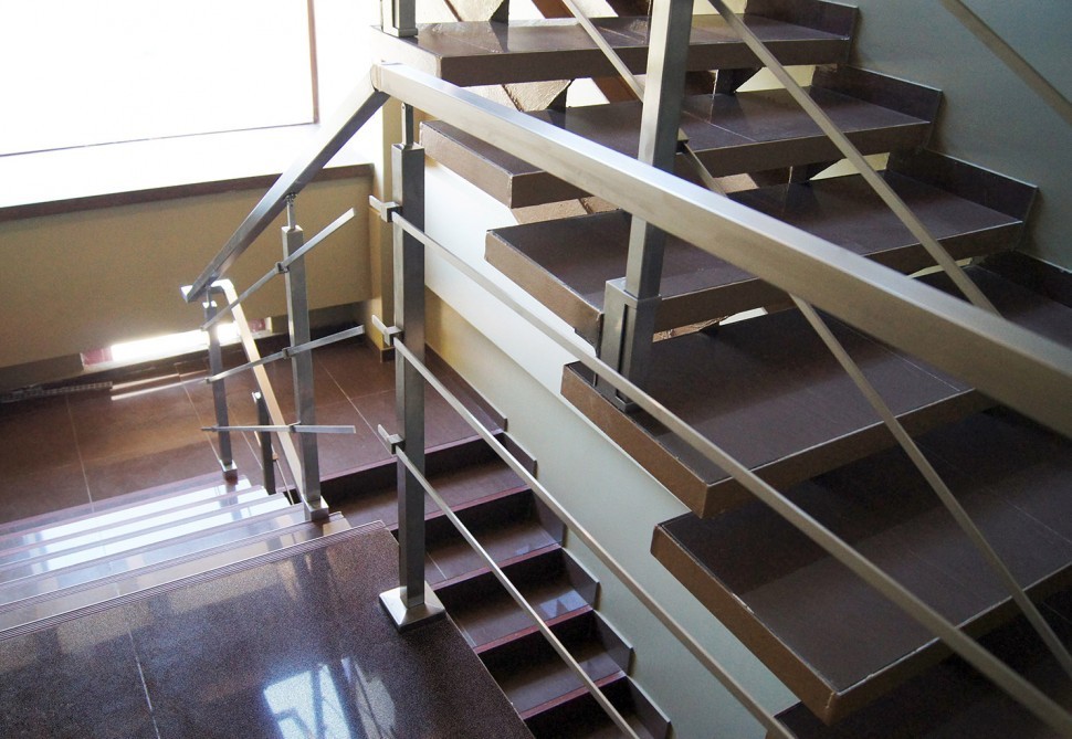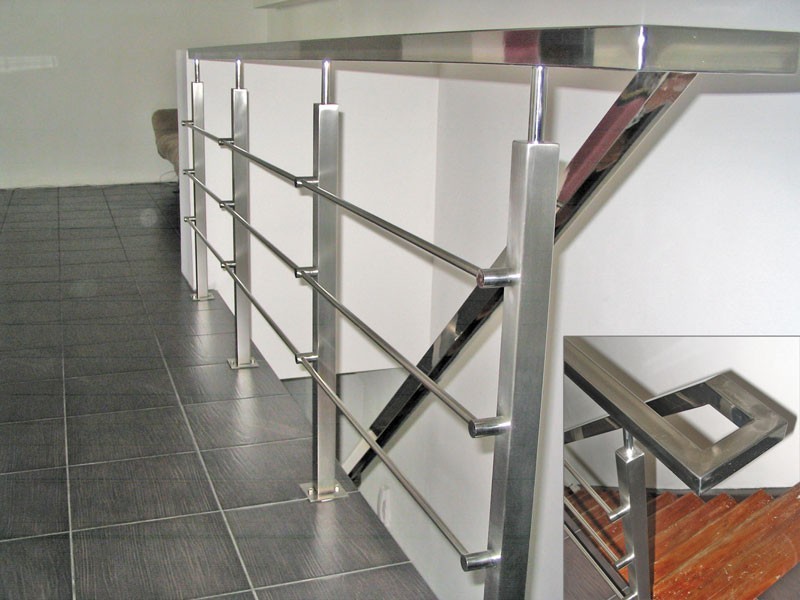 - Два ригеля на сварке, квадратный поручень и круглые стойки