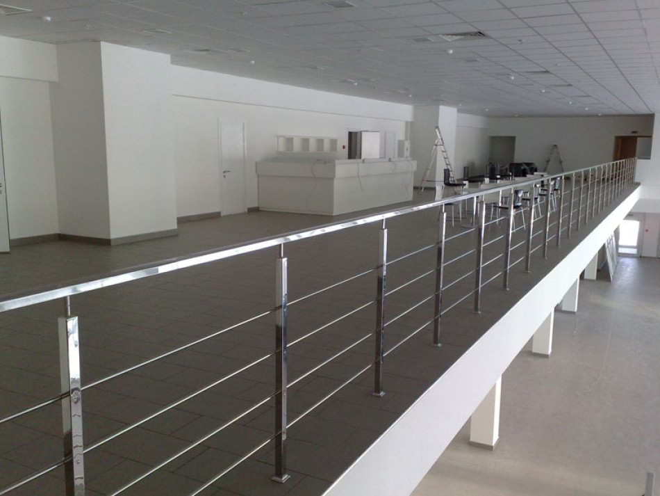 Записаться на встречу Два ригеля на сварке, квадратный поручень и круглые стойки