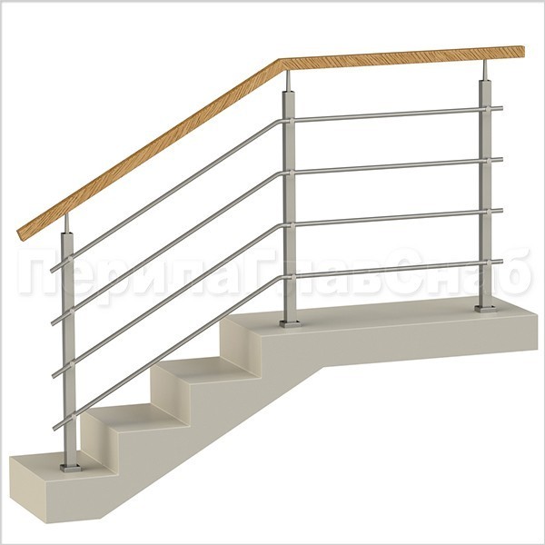 - Четыре ригеля на держателях, квадратный деревянный поручень и квадратные стойки