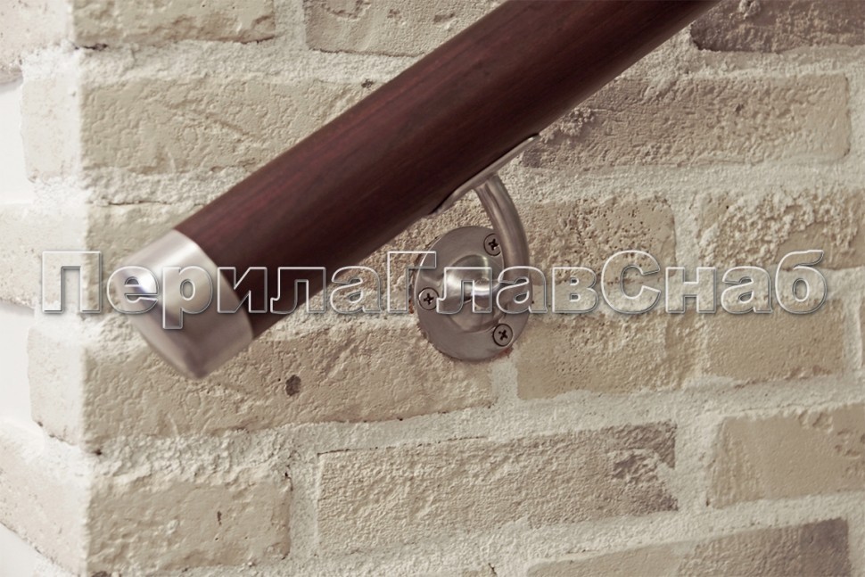 В базовой конфигурации используется нержавеющая заглушка на конец поручня. Можно использовать специальные деревянные круговые сектора с нержавеющими концовками, а можно нержавеющие отводы поручня прямо в пол или в стену (с такими отводами использование поручня более комфортно)