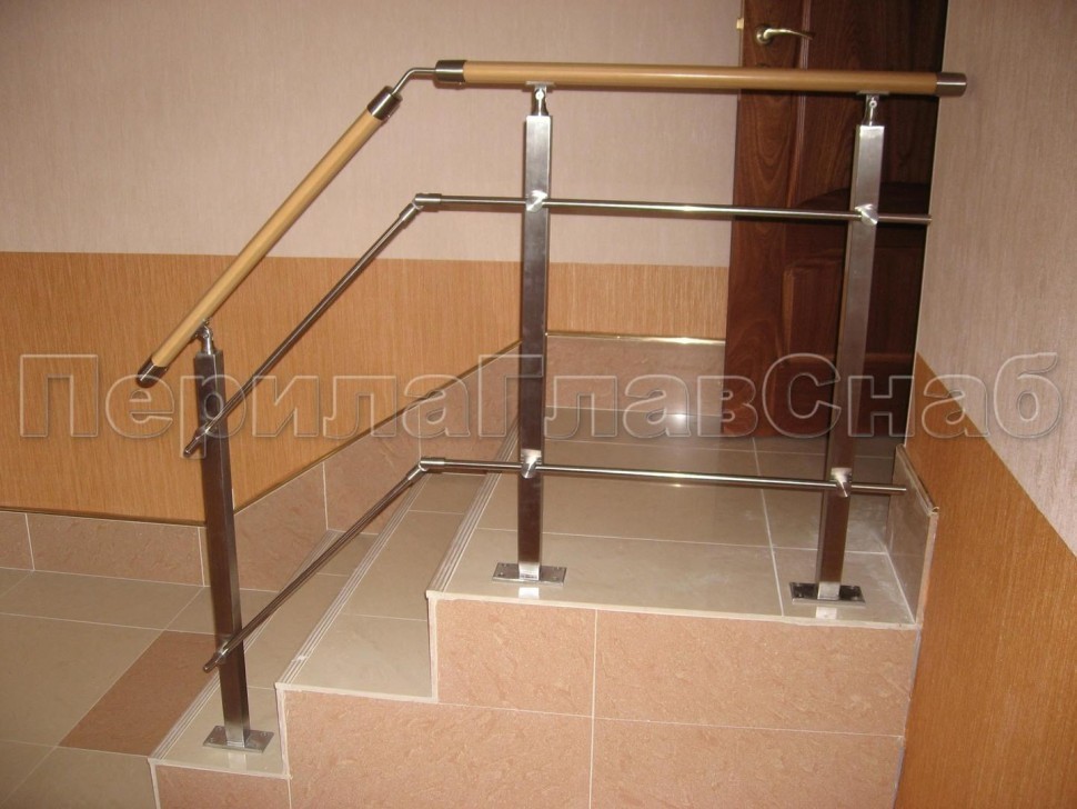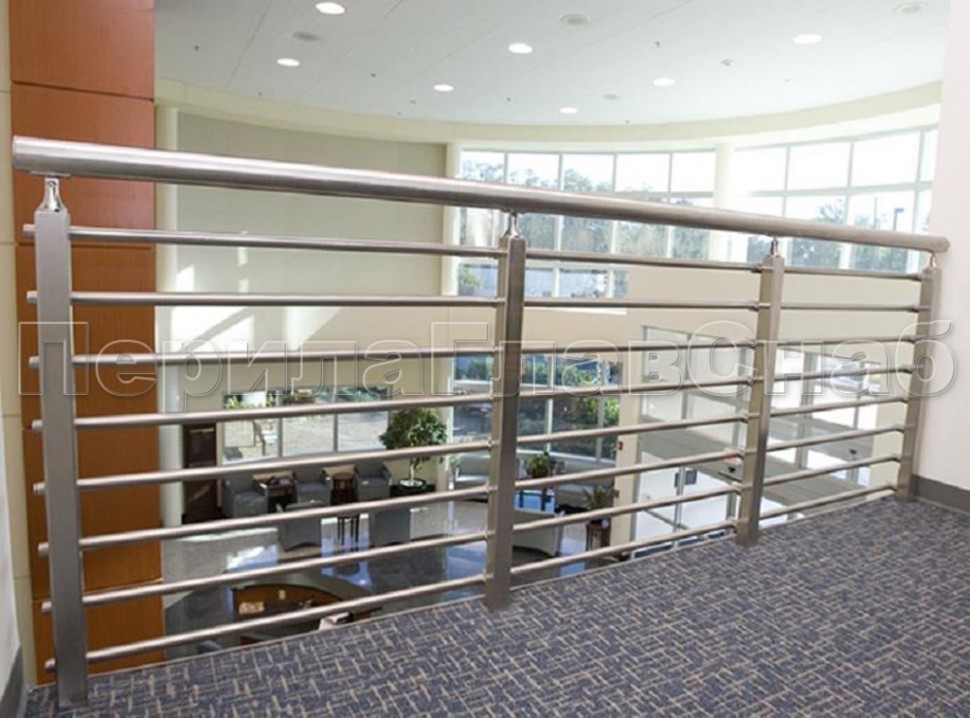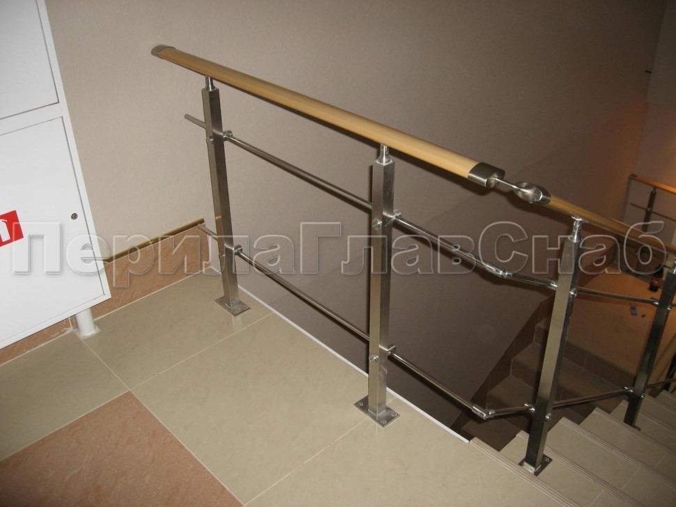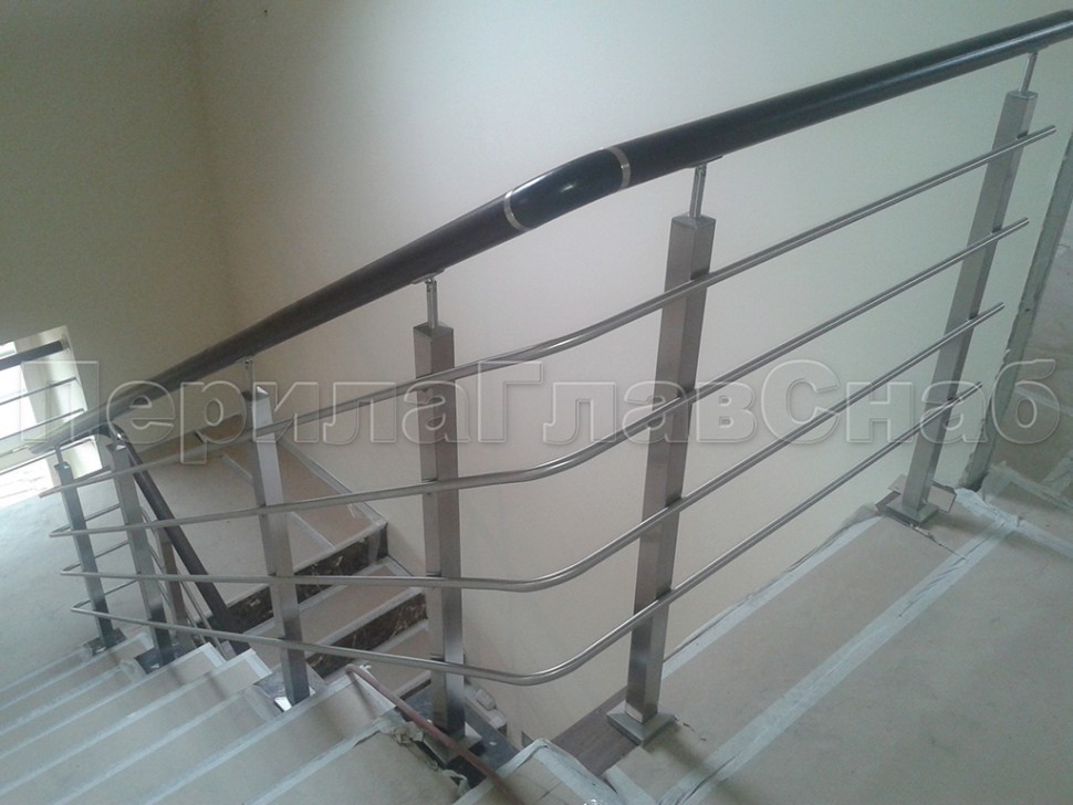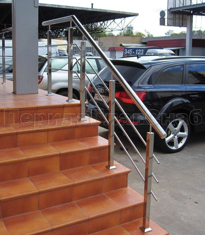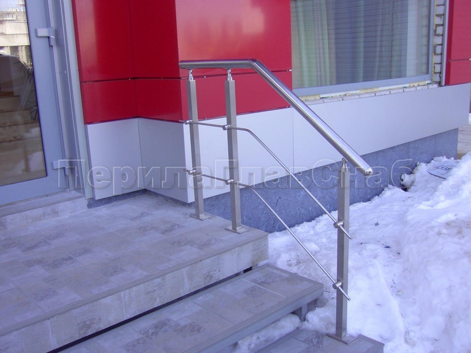 - Два ригеля на сварке, круглый поручень и квадратные стойки