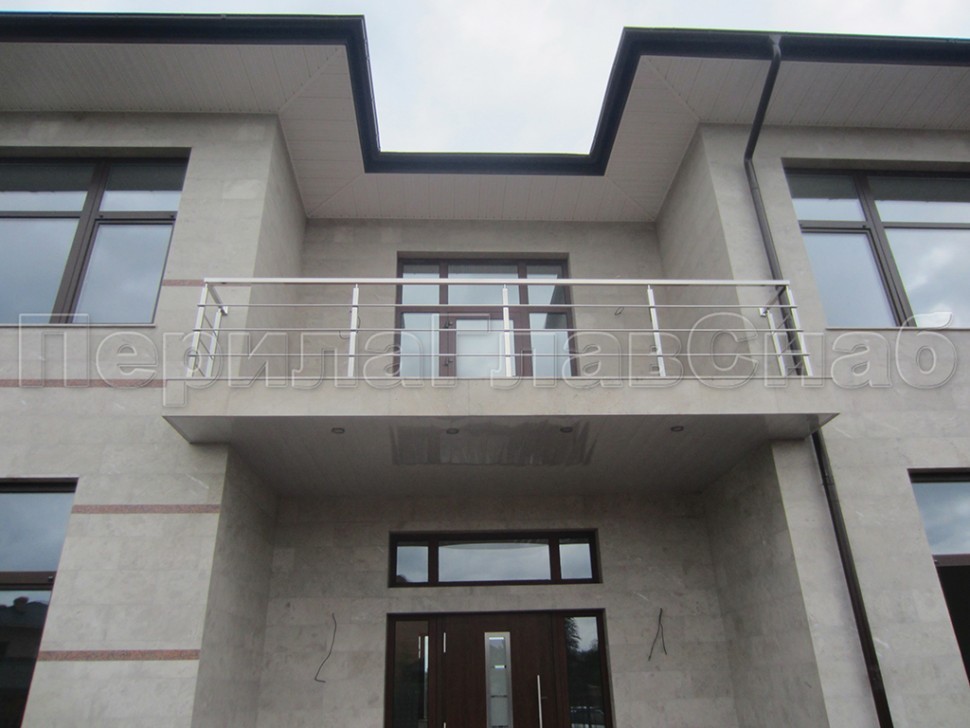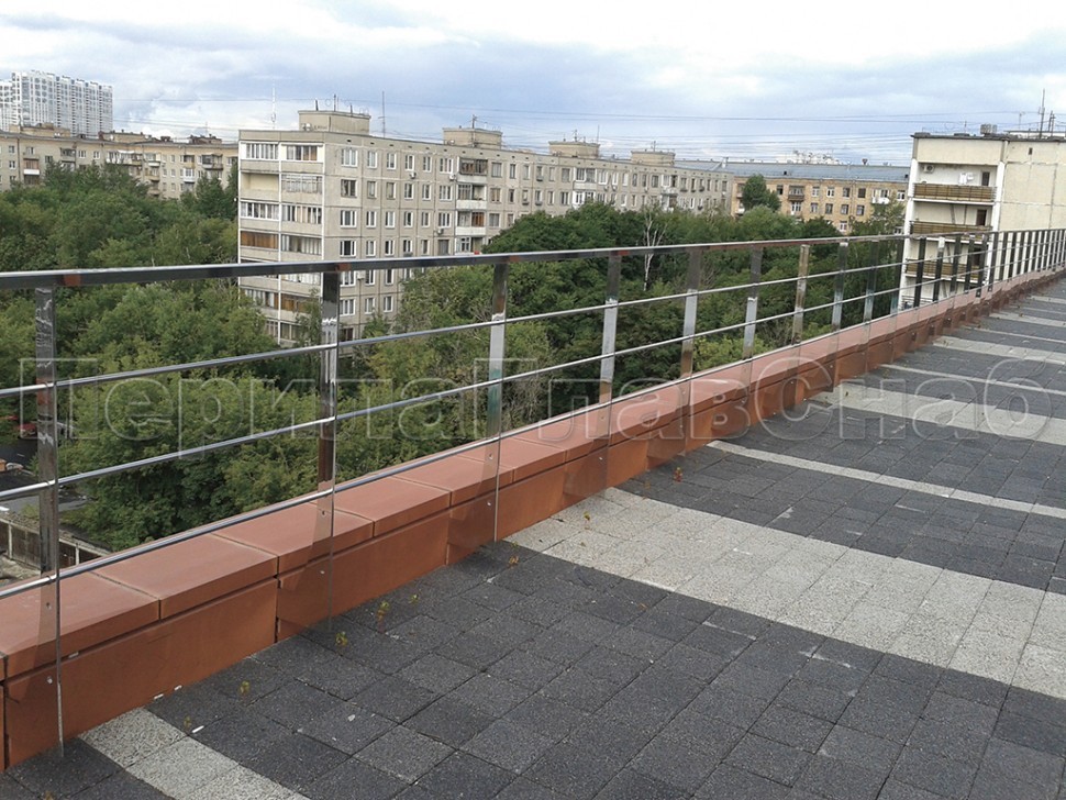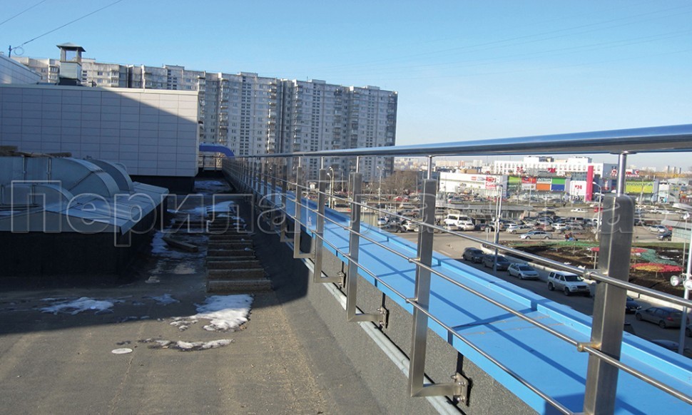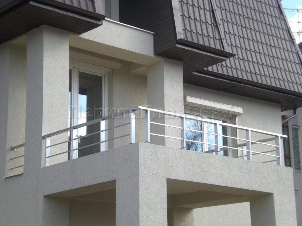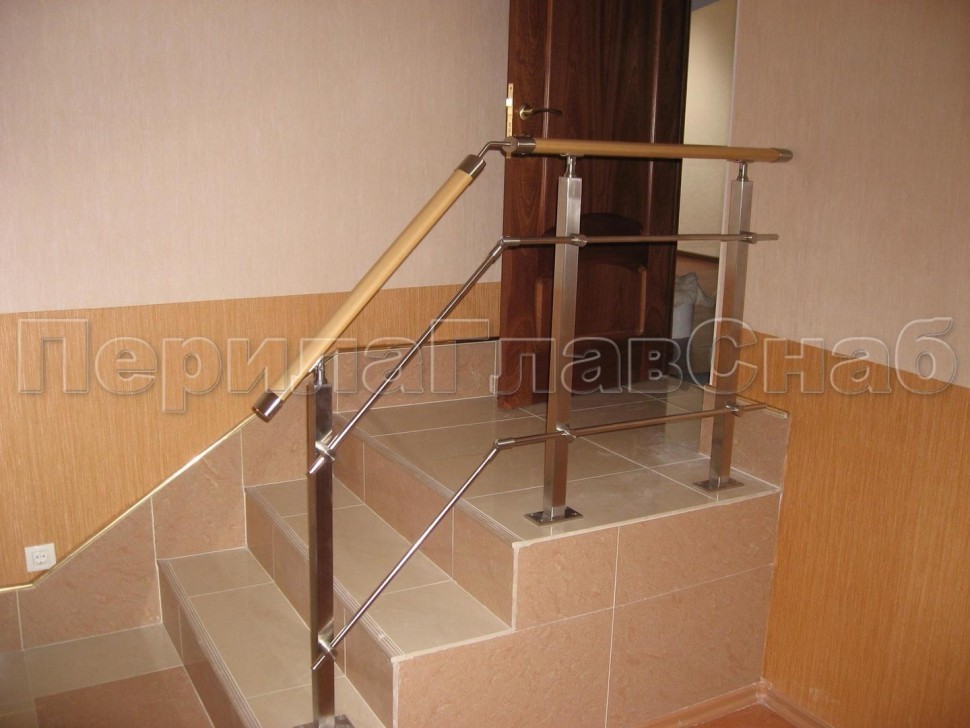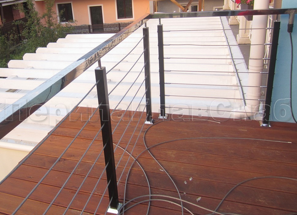 - Два ригеля на сварке, круглый поручень и квадратные стойки