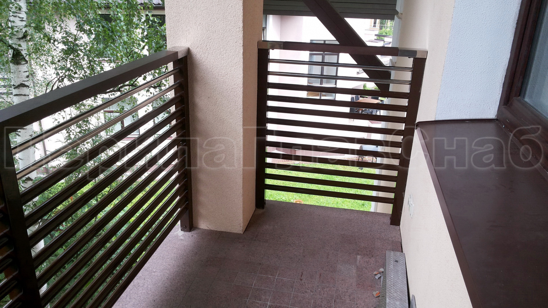 - Нержавеющие ограждения с деревянными вставками - это необычно. Ваш дом будет выгодно отличаться от соседей.